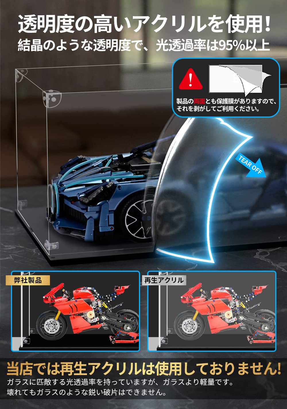 【サイズ】幅15×奥行15×高さ25cm、小さなフィギュアやモデルのディスプレイに最適。例えば、小さな人形やおもちゃなど。フィギュアケース附带了フィルム除去ツール(表面保護フィルムを快速且簡単に除去できる)、防汚れ手袋、クリーニングクロス、説明書。