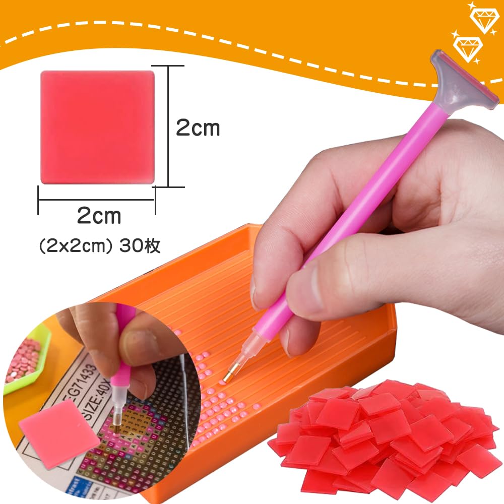 セット内容:絵画のり粘土30枚セット;サイズ: 2×2cm;ダイヤモンド工芸品の製造に必要な消耗品。糊粘土は透明で美しく見えます。ダイヤモンドにぴったりとくっつきますが、ダイヤモンドに糊の跡が残ることはありません。(ダイヤモンドペンは含まれていません)。