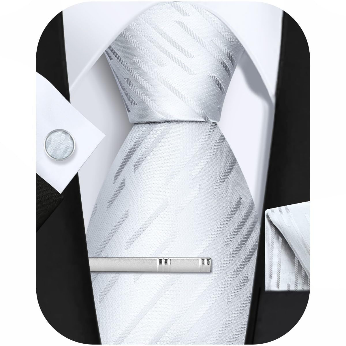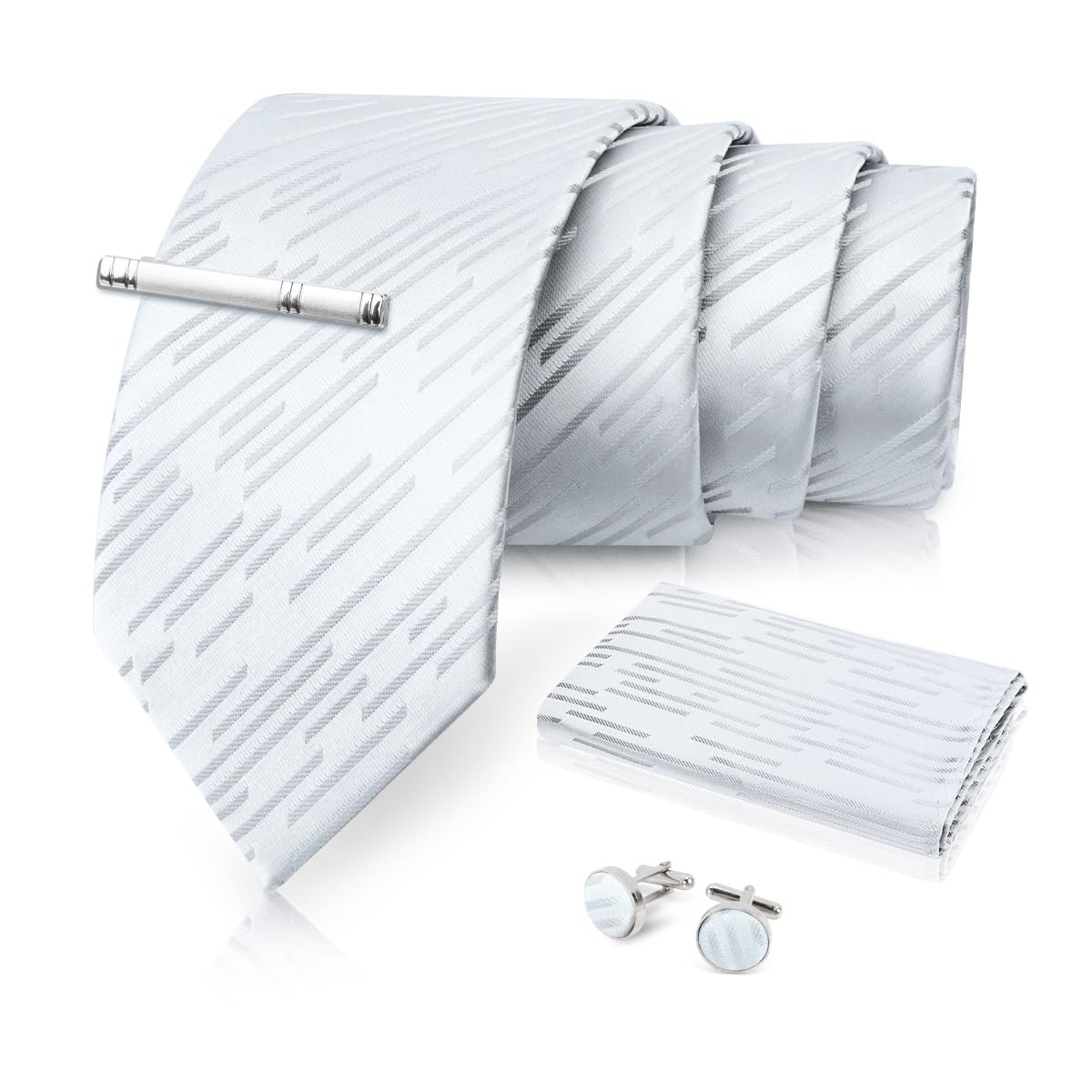 【パーフェクトギフト】ネクタイ 1本+ハンカチ 1本+カフスボタン 1セット+タイピン 1本の4点ネクタイセットです、非常に高級感に見え、統一感があります、同柄品セット、コスパ が高い、セットで合わせると格好よく見えるビジネスマンのイメージが完成度の高いです。単品でご使用いただくと、服装やTOPに合わせて、気分や魅力を演出します、ビジネス、結婚式、日常業務、カクテルパーティ、宴会、ホームパーティー、パーティー、レジャーなどシーン適用します;