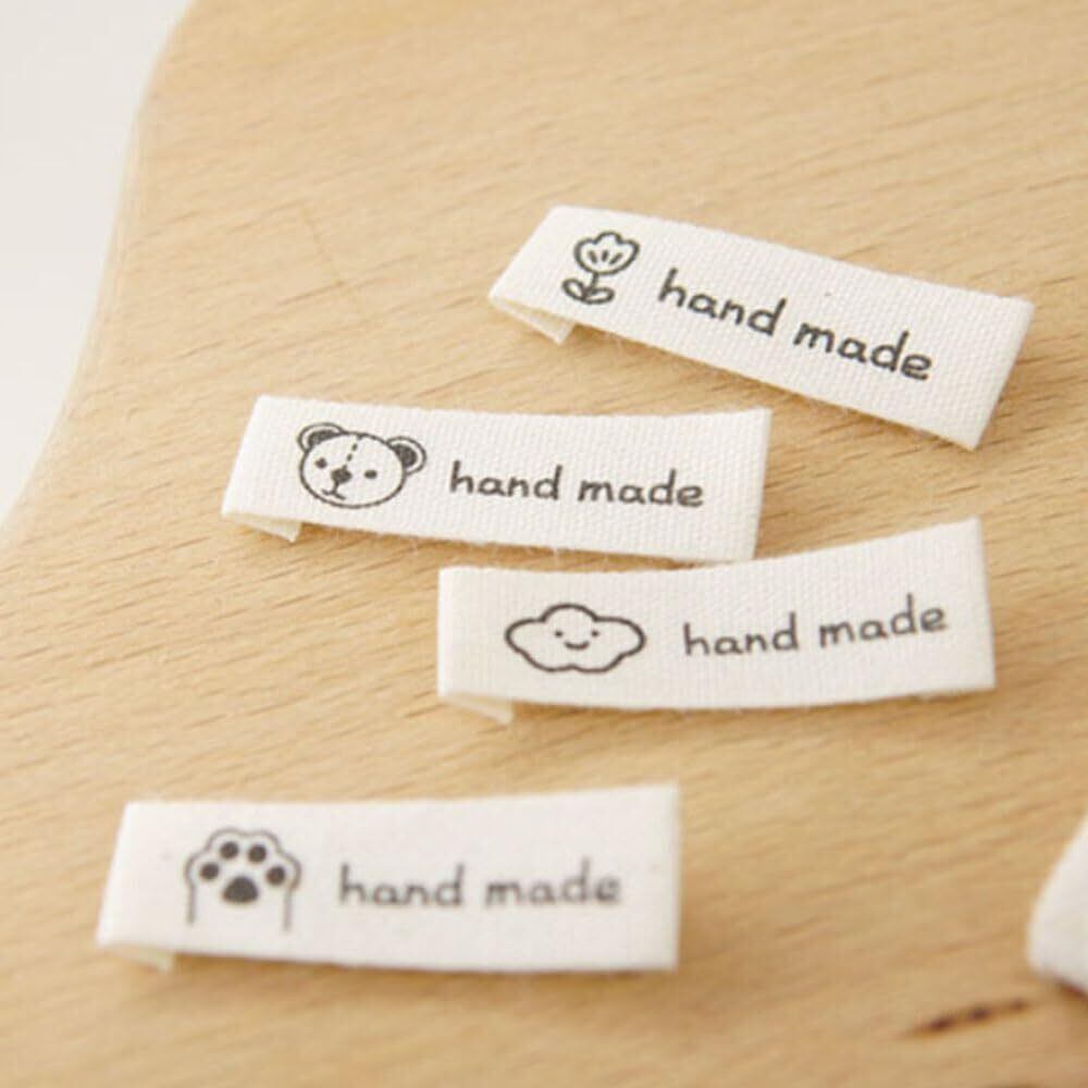 【特価セール】サムコス ハンドメイド用タグ ラベル 100枚セット 綿 かわいい シンプル おしゃれ ラベル 手芸 ロゴ 縫製 DIY 服飾補助材料 衣類 帽子 刺繍タグ 印刷ラベル リュックサック バッグ ハンドメイド ワッペン 手作り Handmade 花 | nico3588