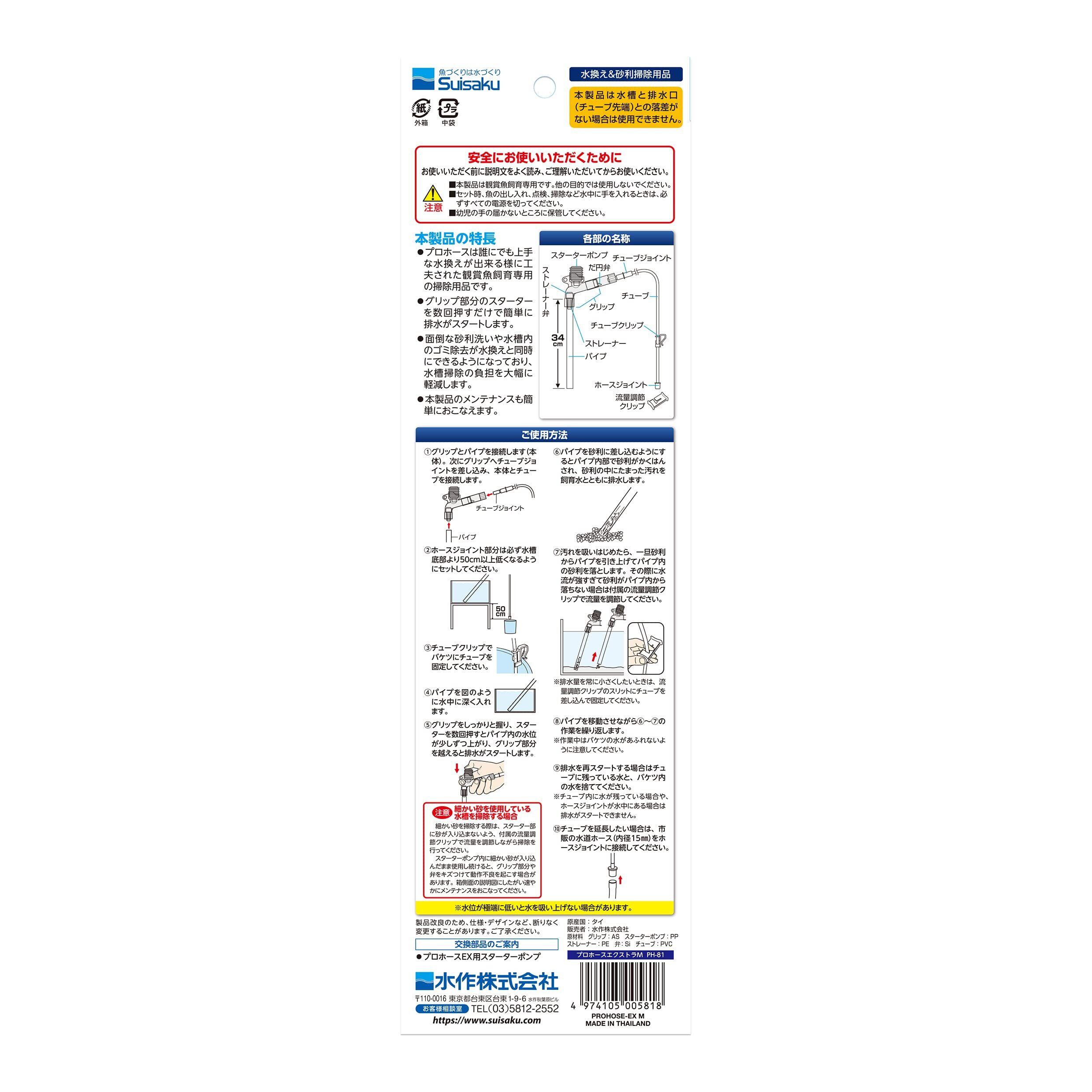 砂利はそのまま、ゴミだけを古くなった飼育水と一緒に簡単排出する掃除用ホースです。弁がシリコン素材になり、エア漏れがしにくくなりました。またポンプ潰れを防止するリング付きです。グリップ部分のスターターポンプを数回押すだけで簡単に排出がスタートし、水槽内のレイアウトを崩すことなく観賞魚や水草にもやさしい水換えを実現します。水槽サイズや砂利の種類にあわせて排水のスピードを調節することも可能です。パイプを底砂に差し込むだけで砂利の中の老廃物を古くなった飼育水と一緒に排水します。