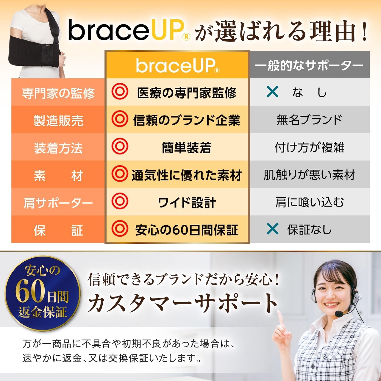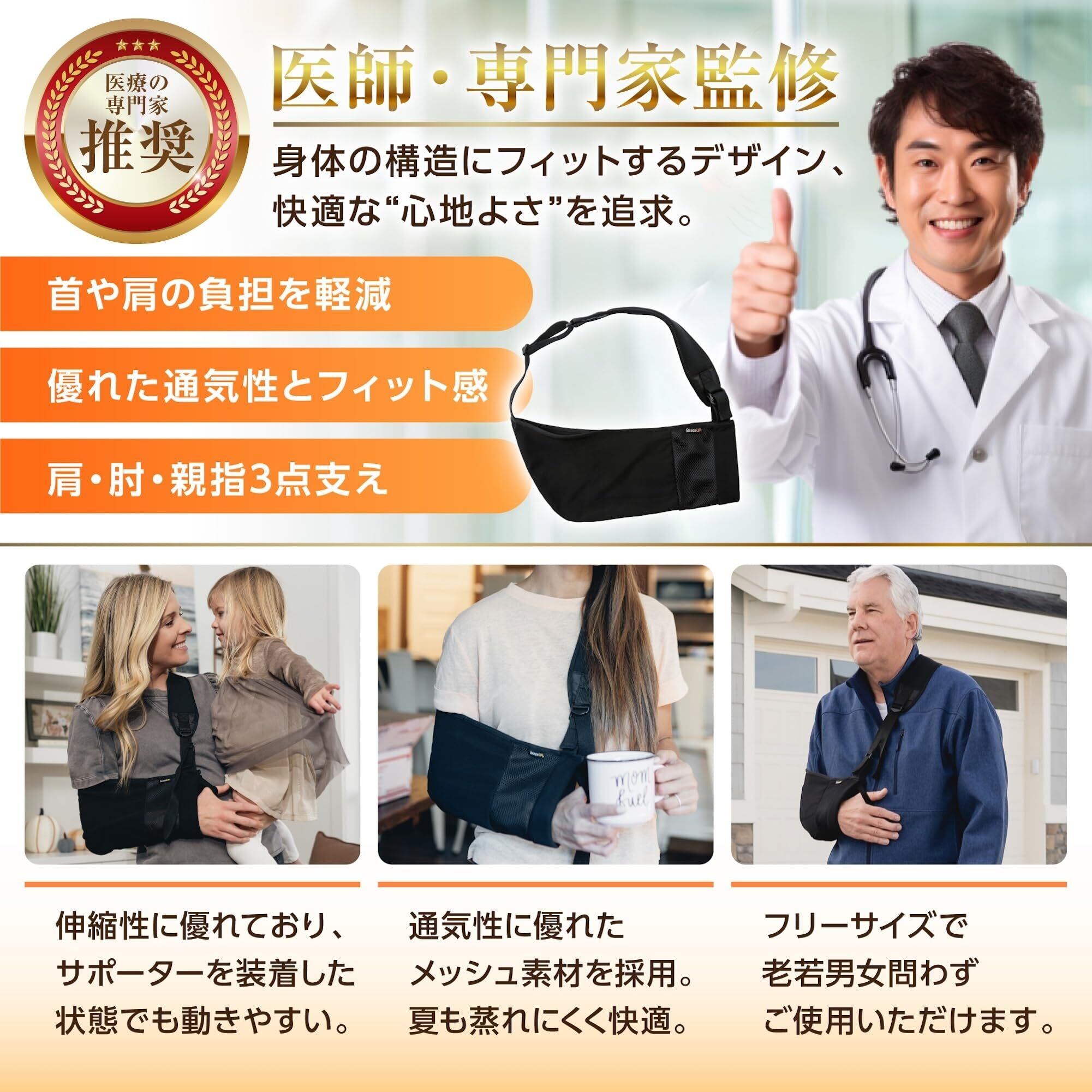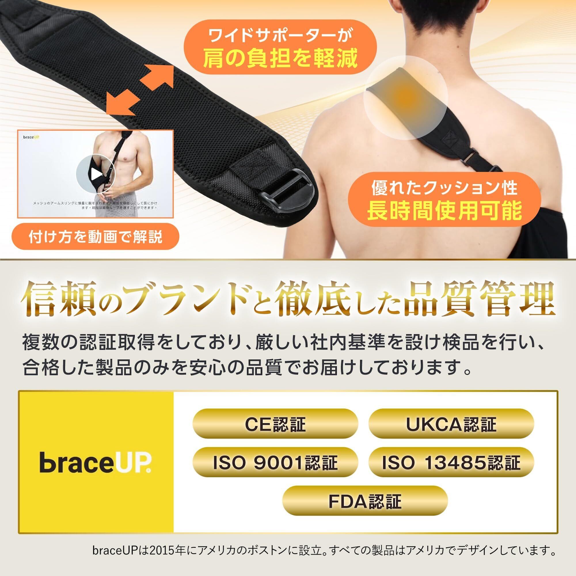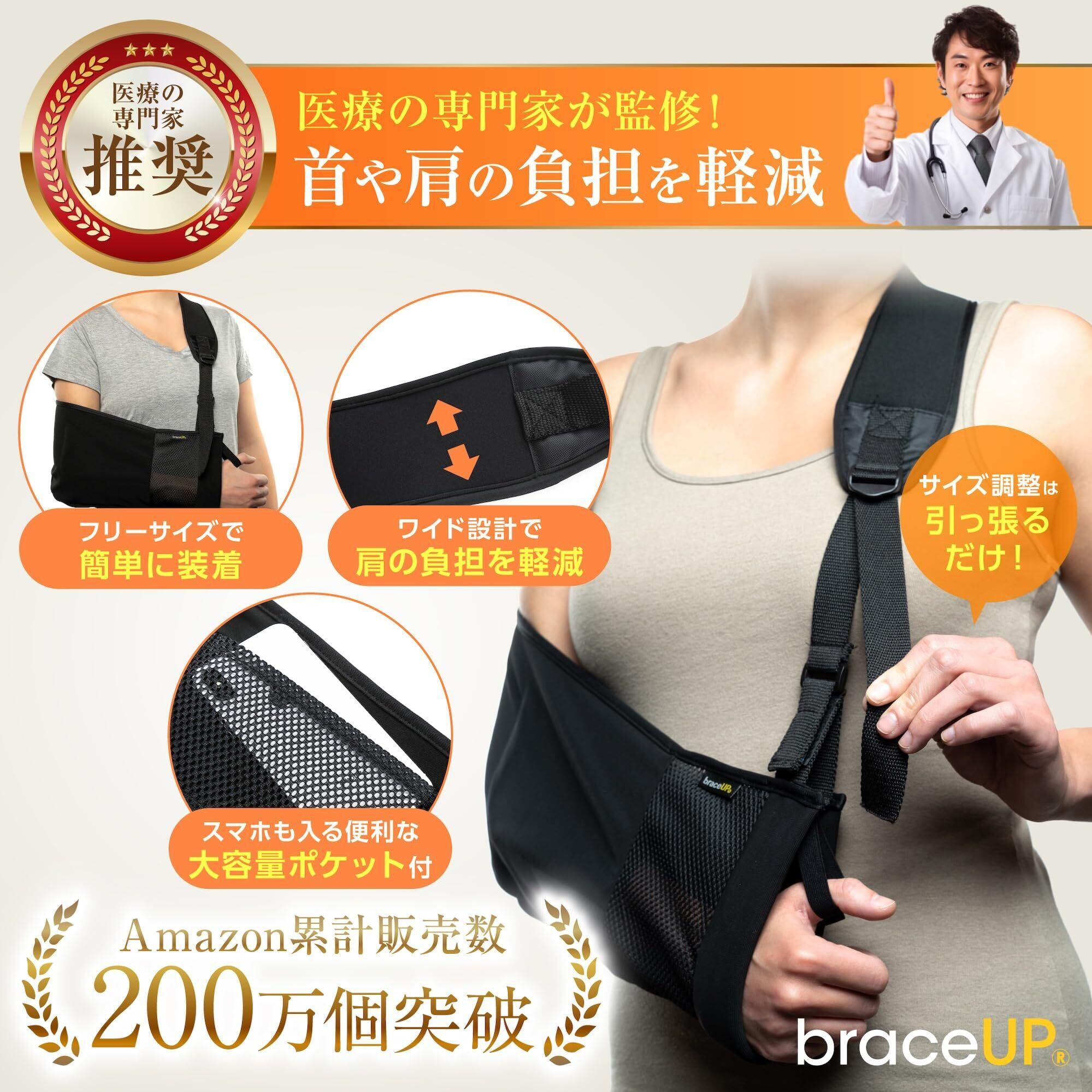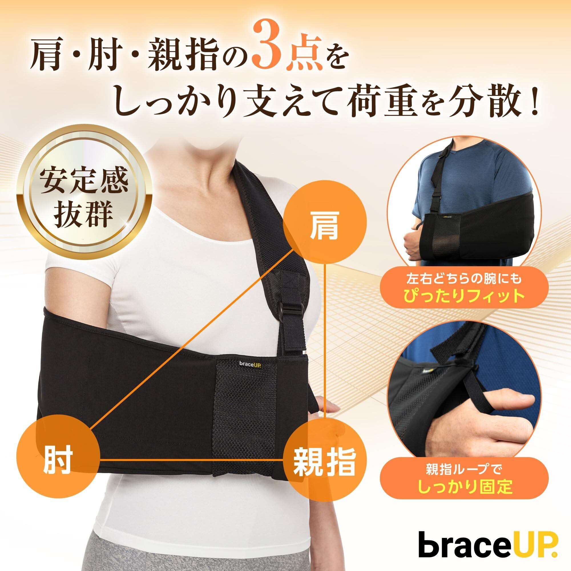 BraceUP アームスリング アームホルダー 三角巾 さんかくきん 大人 腕つり 腕吊り 固定バンド ブラック ショルダースリング 左右対応