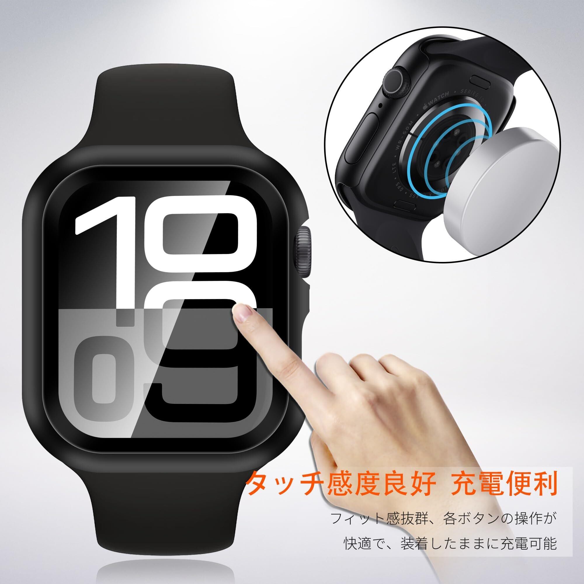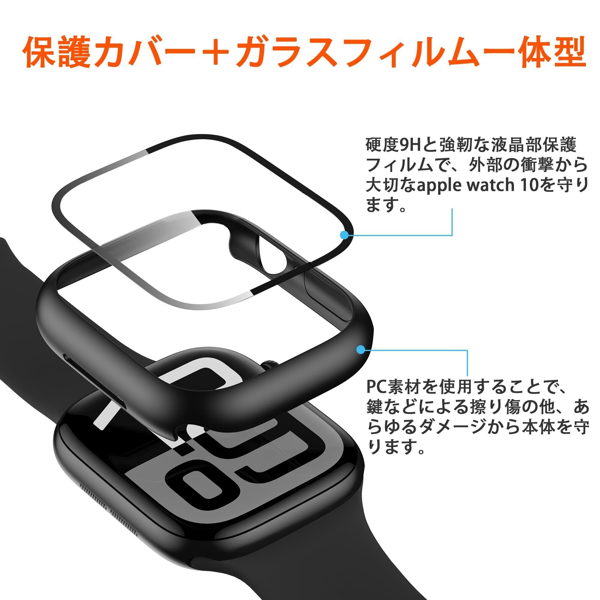【高級感が溢れるデザイン&装着が簡単】 apple watch 10保護カバー+液晶ガラスフィルムの融合された革新的な一体型デザイン。取付け道具不要、apple watch 10本体の上から嵌めるだけで楽に装着できます。従来のフィルム貼りの手間も省けます。