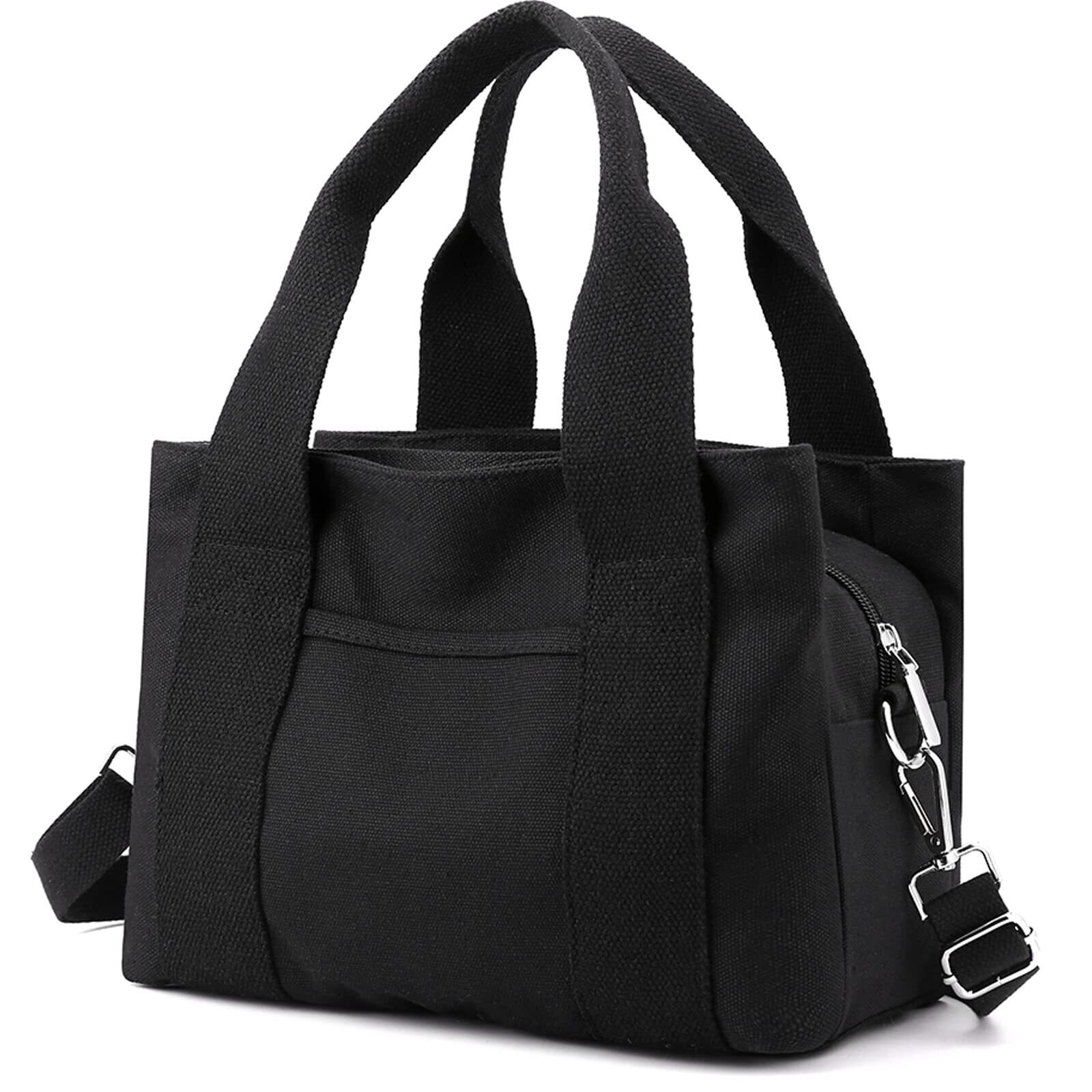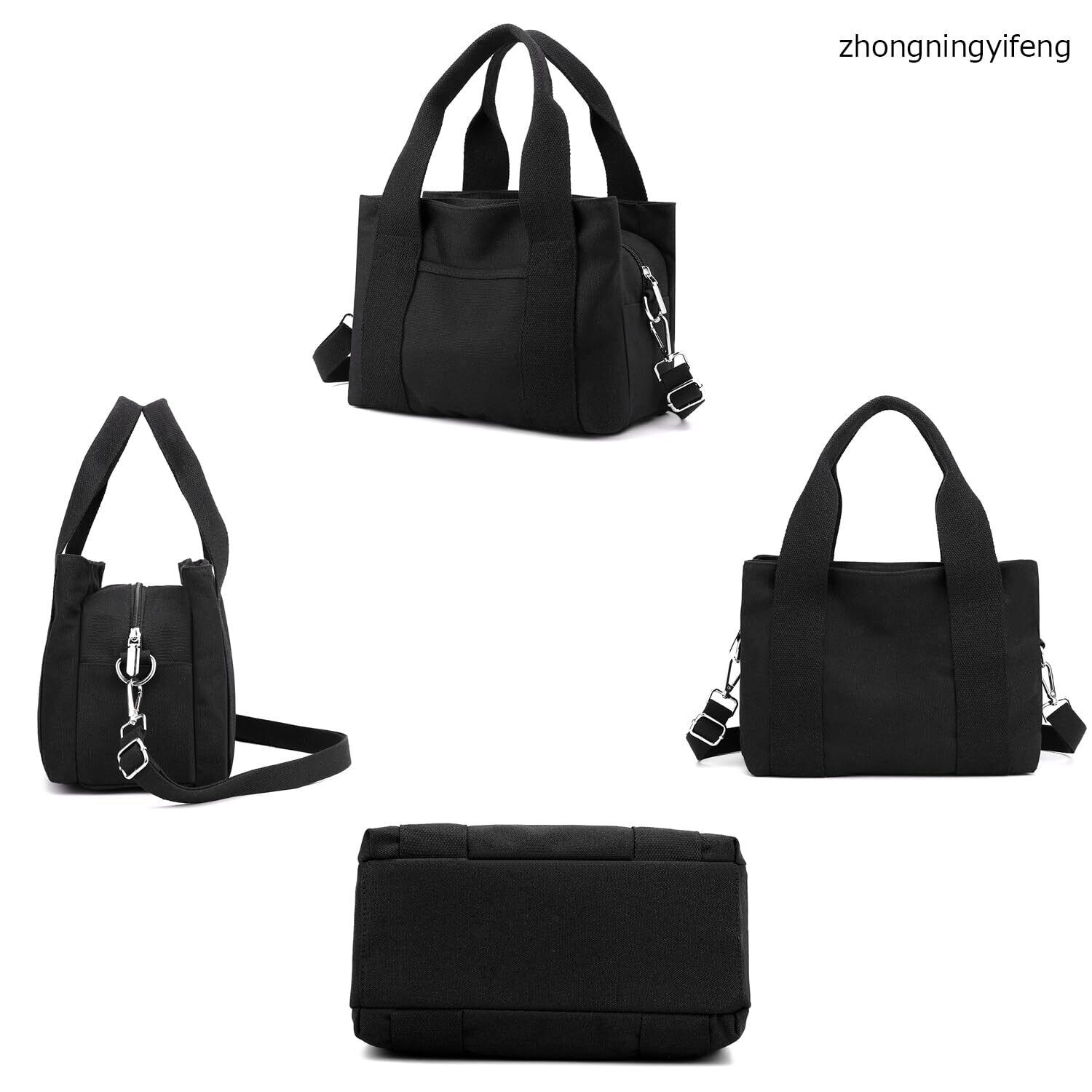 [zhongningyifeng] レディース キャンバス ハンドバッグ ショルダーバッグ スモール カジュアル マルチポケット トップハンドル トート クロスボディ