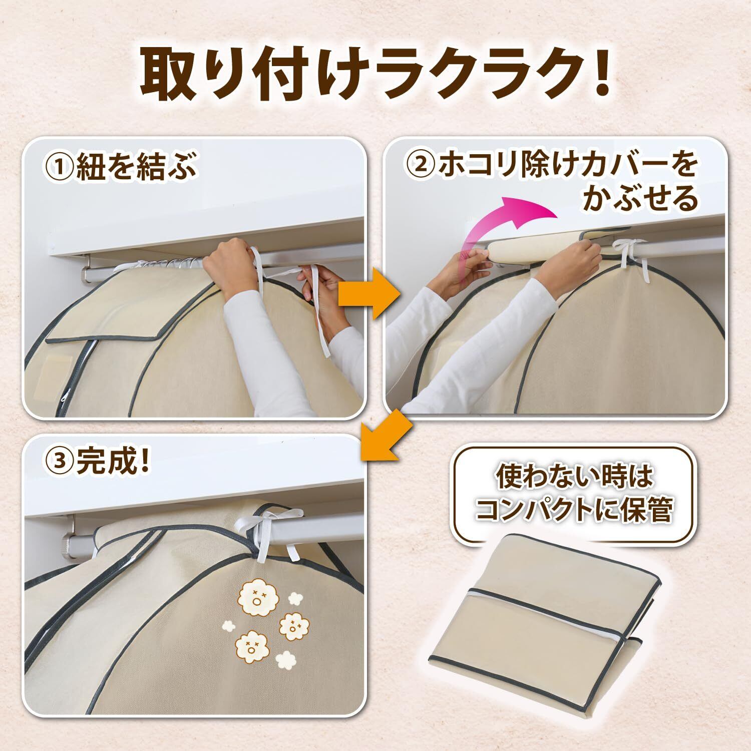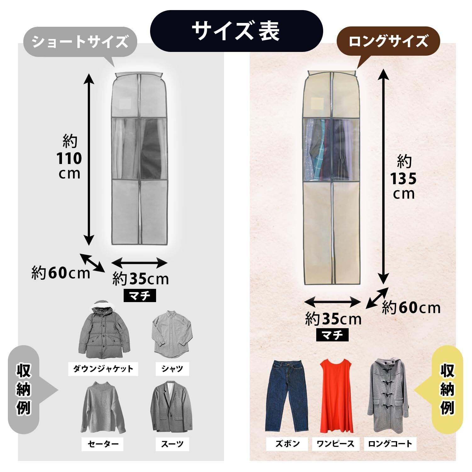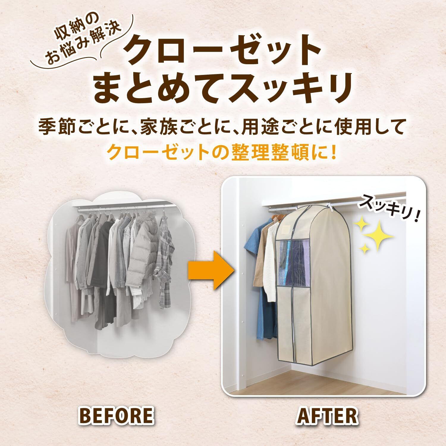 【衣類をまとめて保管】:オフシーズンの洋服をまとめてホコリなどの汚れから守ります。5~7枚までの衣類の保管が可能。