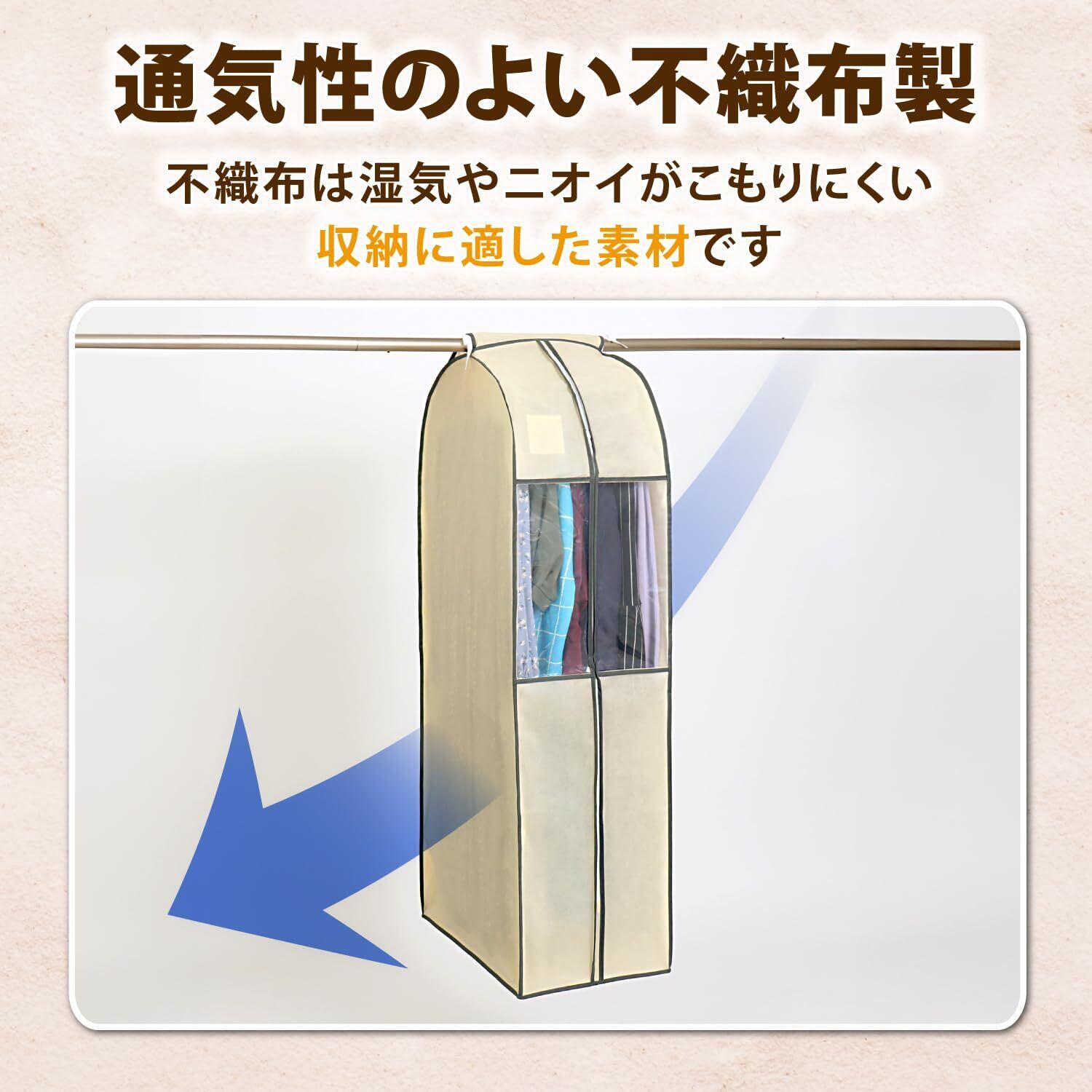 【特価商品】アストロ 衣類カバー ロングサイズ 35cmのマチ付き 吊り下げたまま使えるゆったりシワになりにくいマチ付き洋服カバー 通気性の良い不織布がホコリなどの汚れをガード スーツカバー コートカバー 衣装カバー 吊り下げ収納 ベージュ 131-24