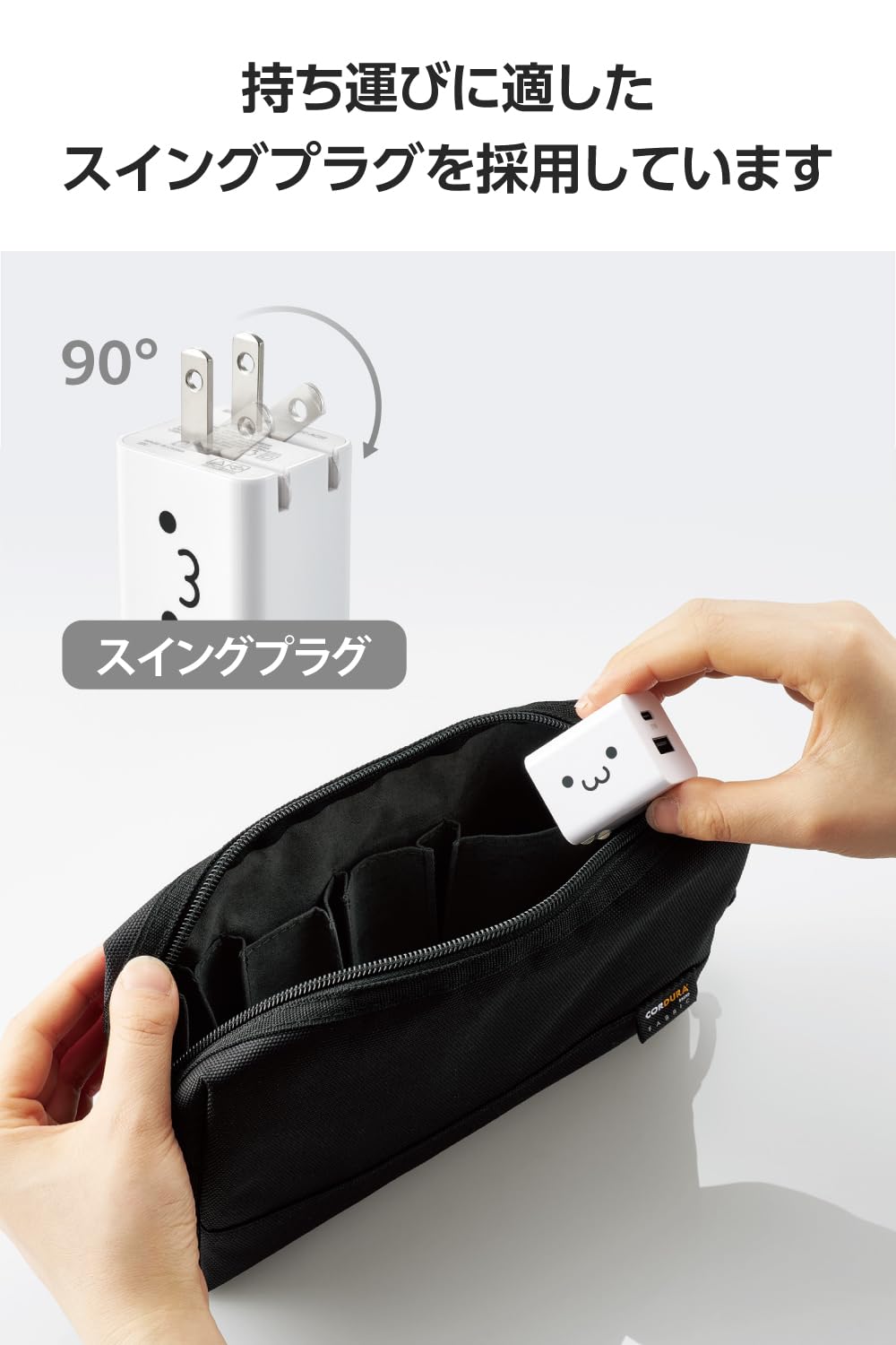 ■未使用時は電源プラグを折りたたんで充電器本体に収納できるので持ち運びにも便利です。