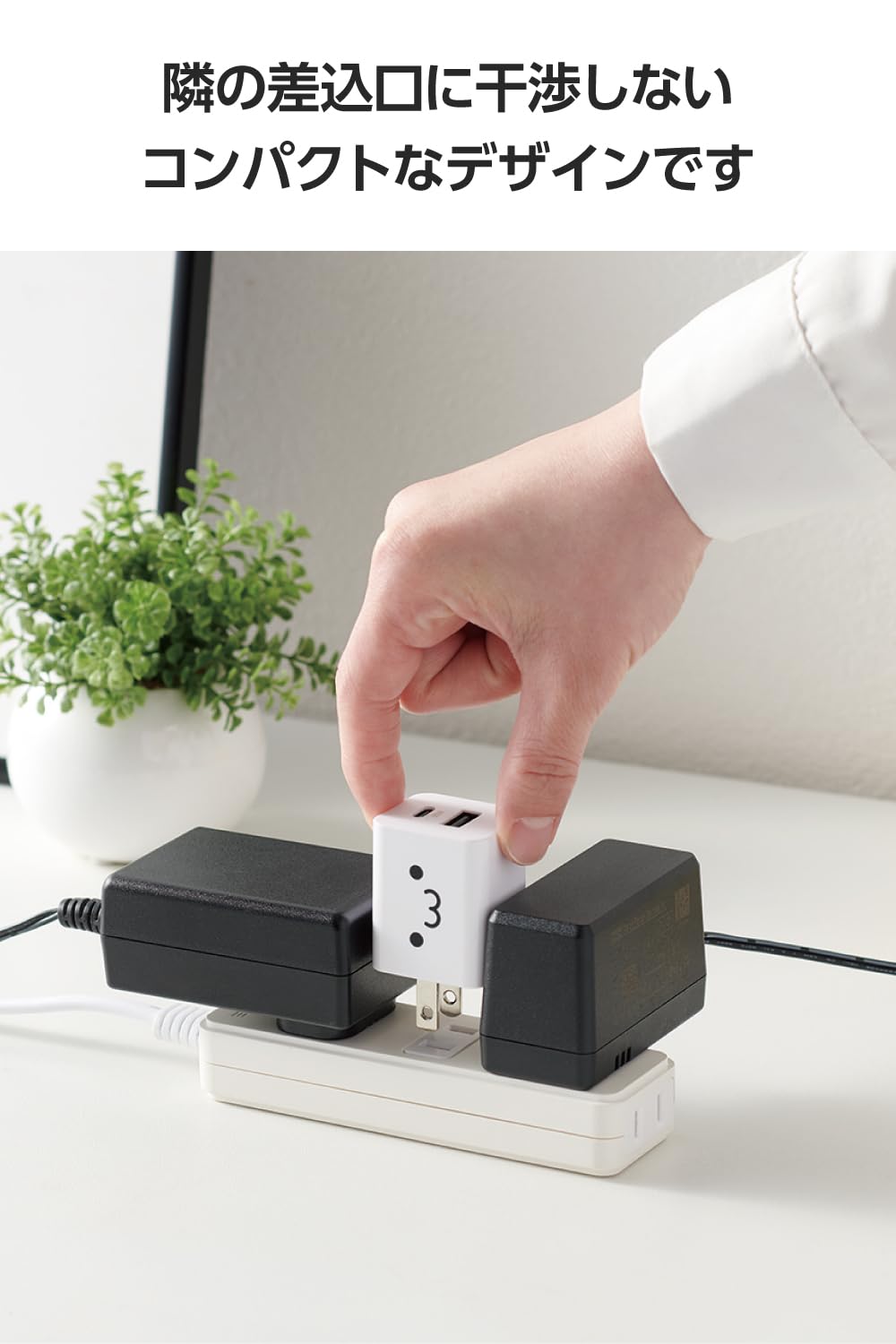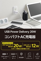 USB Type-C(TM)ポートとUSB-Aポートの合計2ポートを搭載し、対応するスマートフォン、タブレットなどを充電できるUSB AC充電器です。