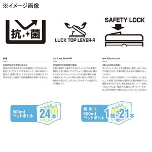 機能および付属パーツ:ICE値(h) 40 / 断熱構造 発泡ポリスチレン / 抗菌(ボディーインナー) / 取り外し可能フタ / 両面開き / ラックトップレバー / セーフティロック(閉じ込め防止構造) / ハンドル / 水栓 / ワンアクション水栓 / 滑り止めゴム