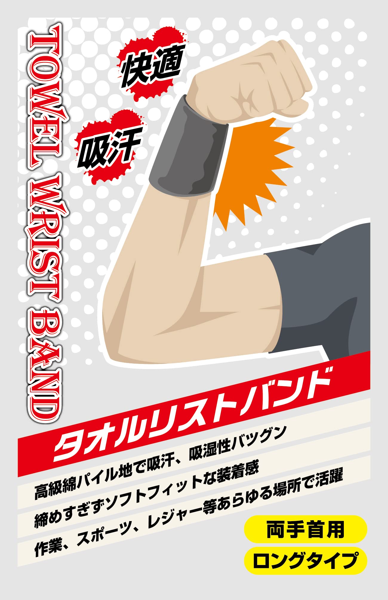 【人気商品】[カジメイク] 汗取りタオル リストバンドロング