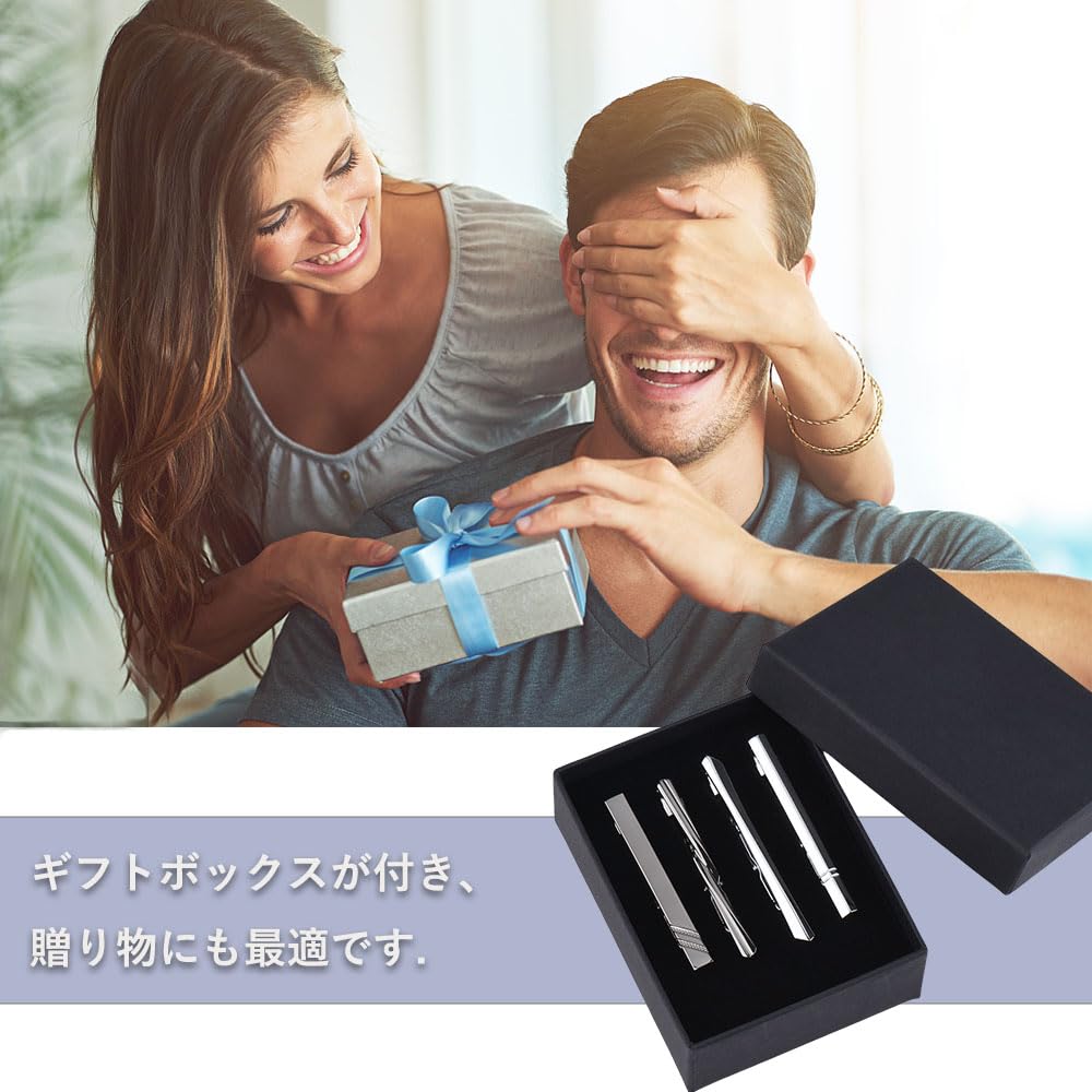 【さまざまなシーンに対応】本セットにはネクタイピンが4本(ガンメタリック2本+シルバー2本)含まれており、どんなネクタイやスタイルにもマッチします。ビジネス、職場、面接、結婚式、葬儀、演奏会、感謝会、記念日、パーティーなど、あらゆるシーンで活躍します。