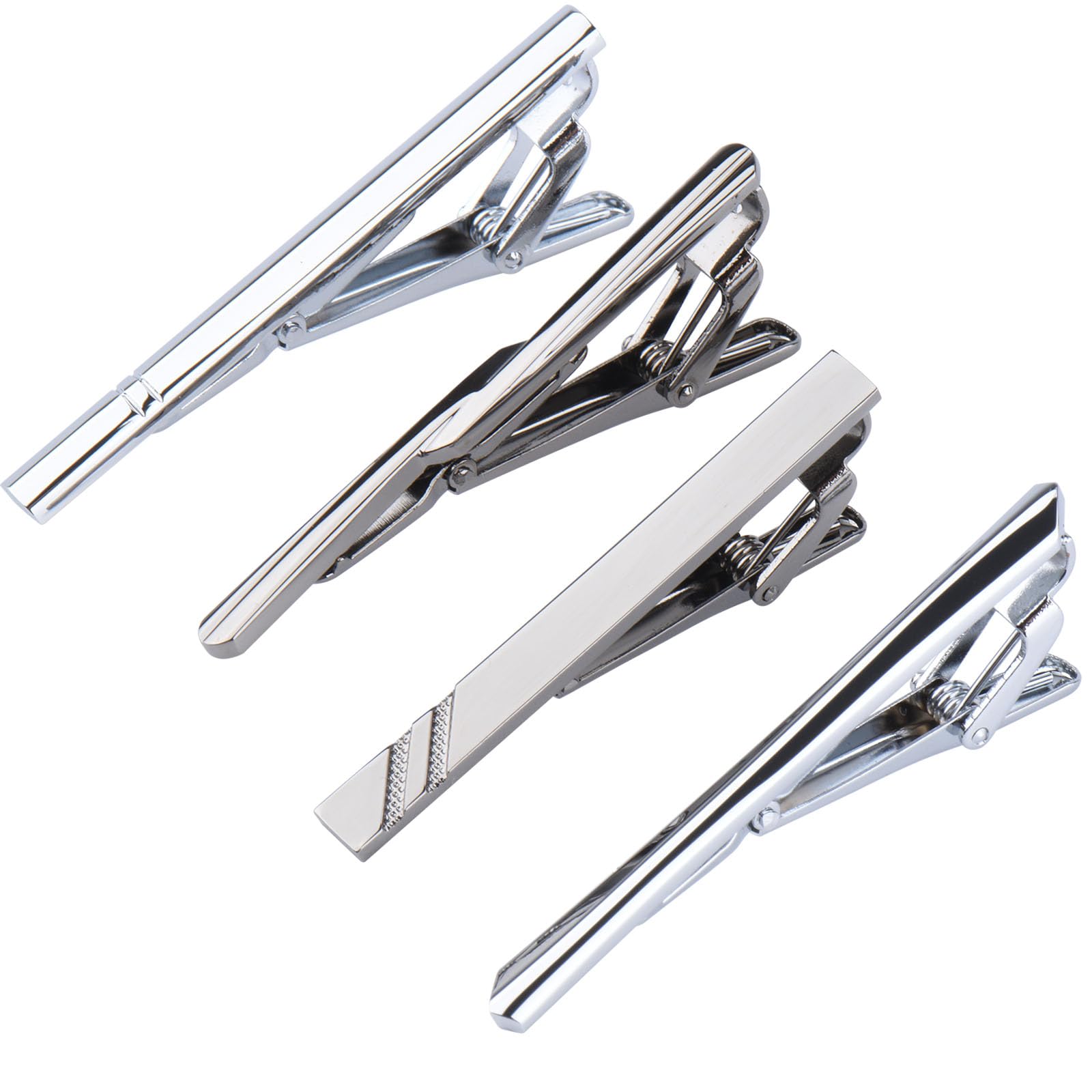 【2025年最新デザイン】洗練されたネクタイピン4本セット。重厚感のあるガンメタリックと、クラシックなシルバーをそれぞれ2本ずつ。ガンメタは上品な印象を与え、シルバーはスーツやジャケットスタイルに幅広く対応できる万能デザインです。