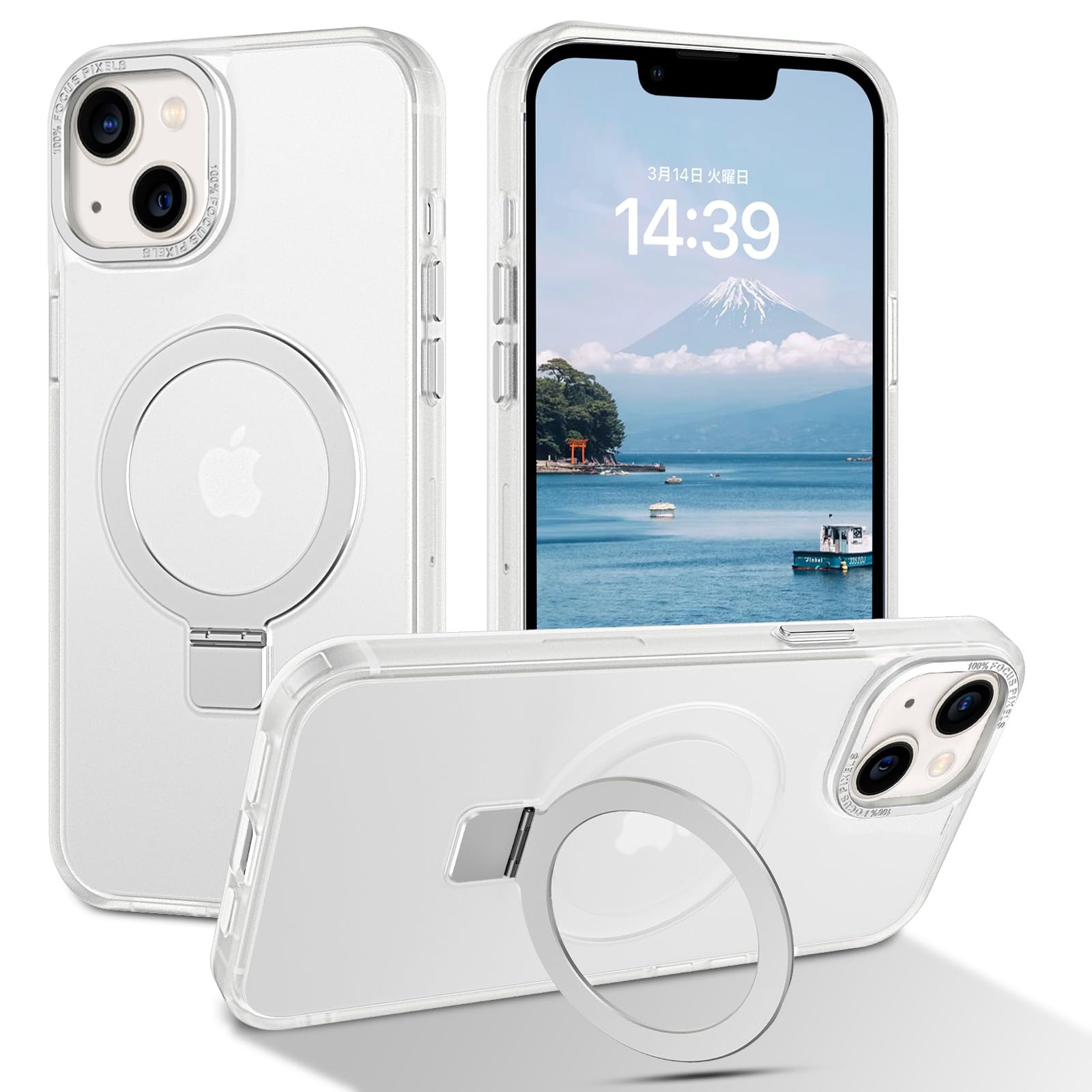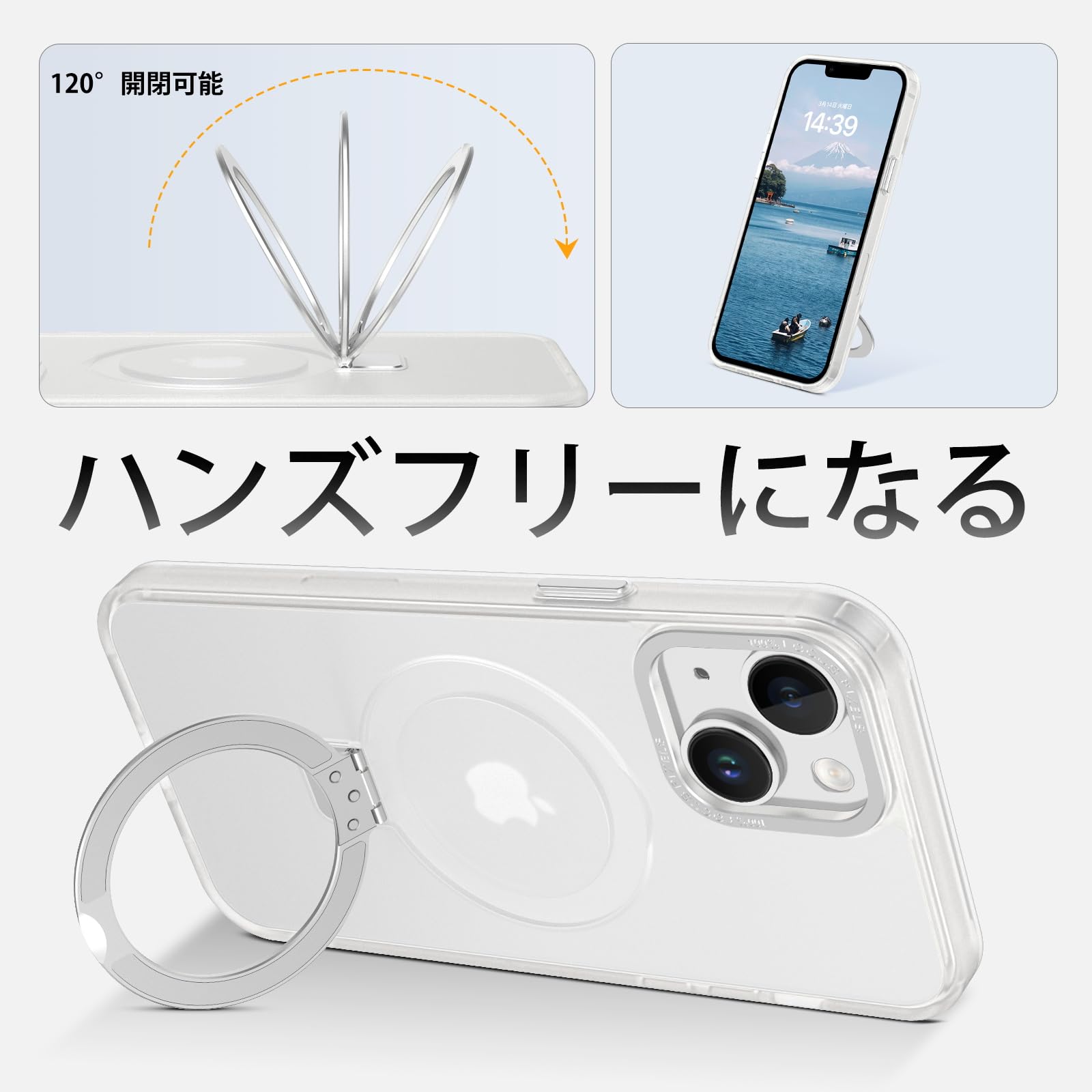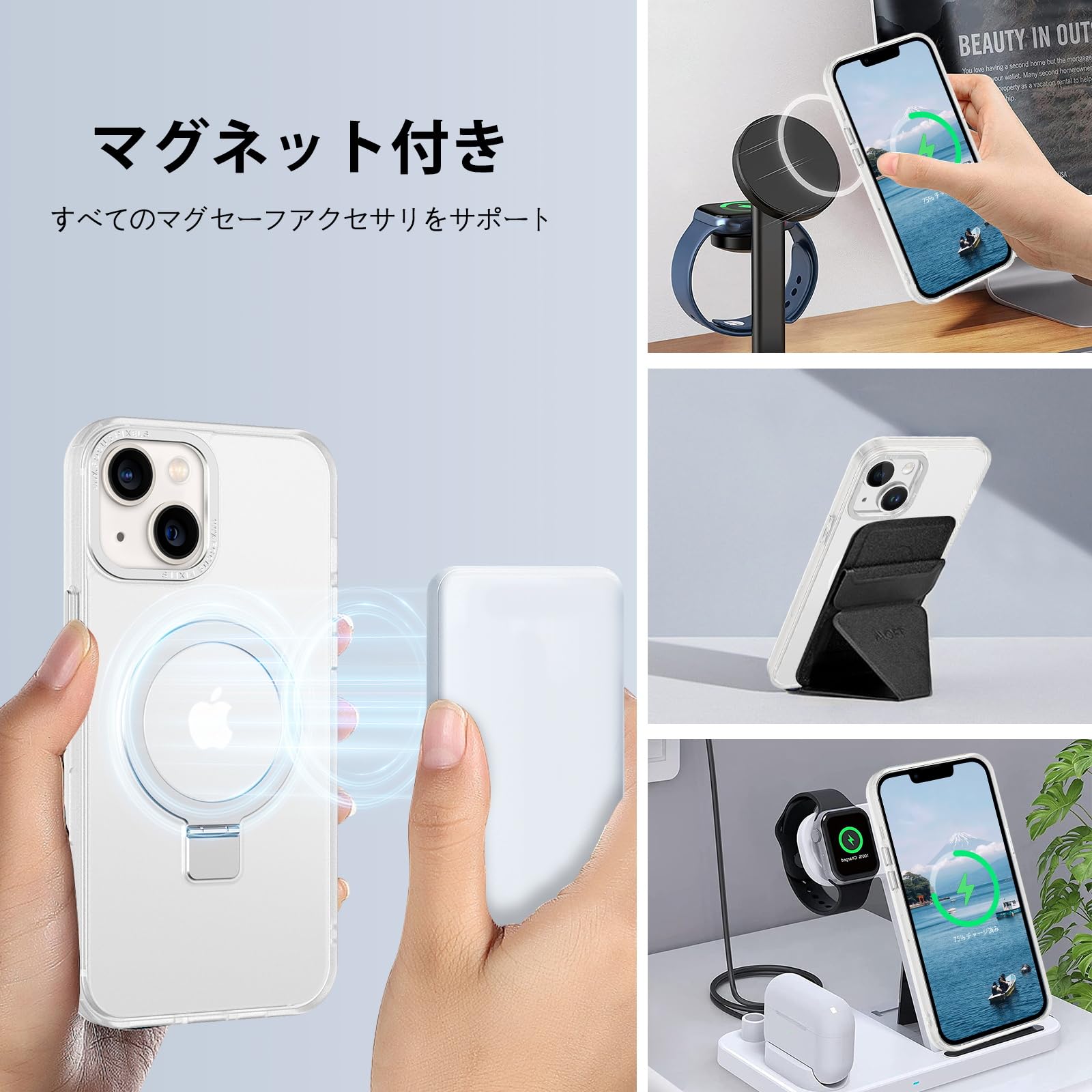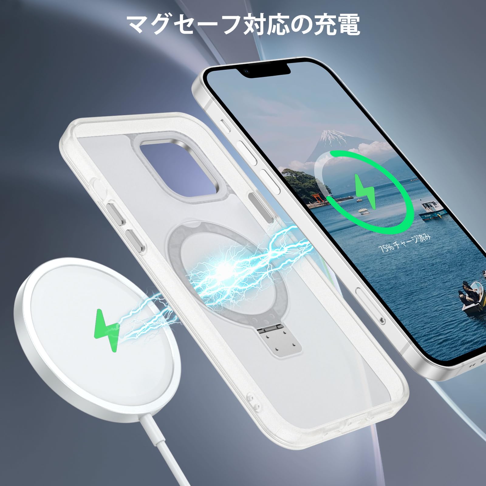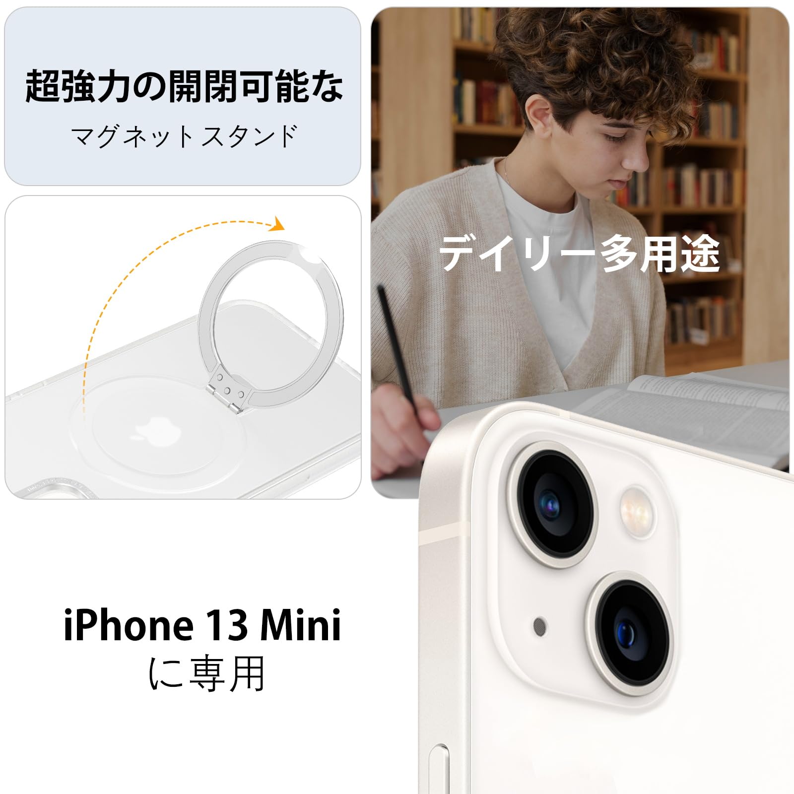 DUEDUE iPhone 13 Mini ケース MagSafe対応 アイフォン13mini ケース マグネット搭載 スタンド機能 120°開閉可能 ホワイト 指紋防止 耐衝撃 一体型 薄型 TPUケース 車載ホルダー対応 ワイヤレス充電 全面保護