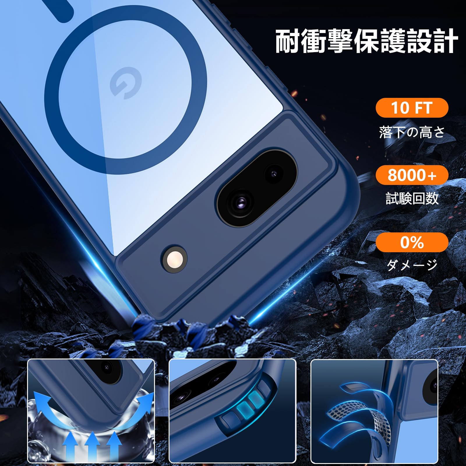 【高品質素材&細部までこだわる保護】厳選されたPCとTPU素材を採用し、一般的な素材よりもさらに耐黄、耐熱、耐スクラッチ、超高い実用性と耐久性で輝き続ける グーグル ピクセル 8a ケース です。また、カメラレンズより1.2mm、画面より1mm高い保護設計を採用し、スマホのレンズと画面が地面に接触しないようにし、うっかり落としても衝撃を吸収し、角までしっかり保護でき、超耐衝撃性の全面保護型の google pixel 8a カバー です。
