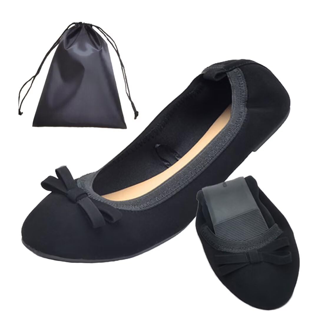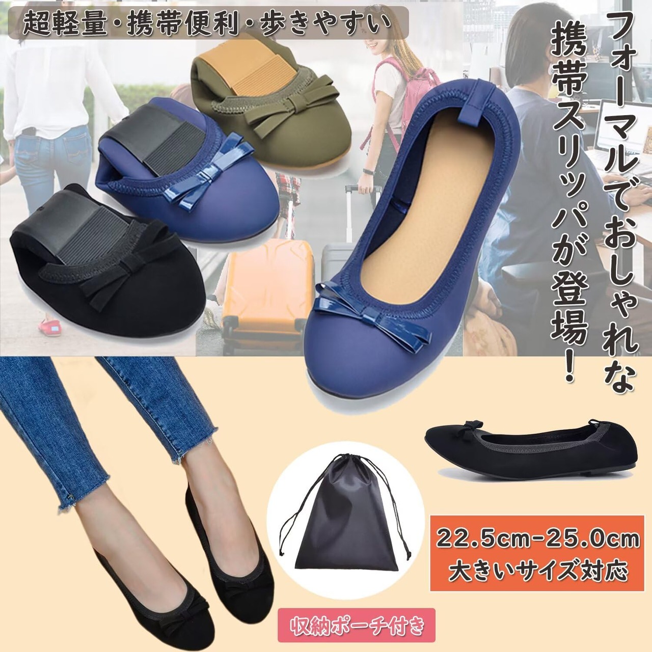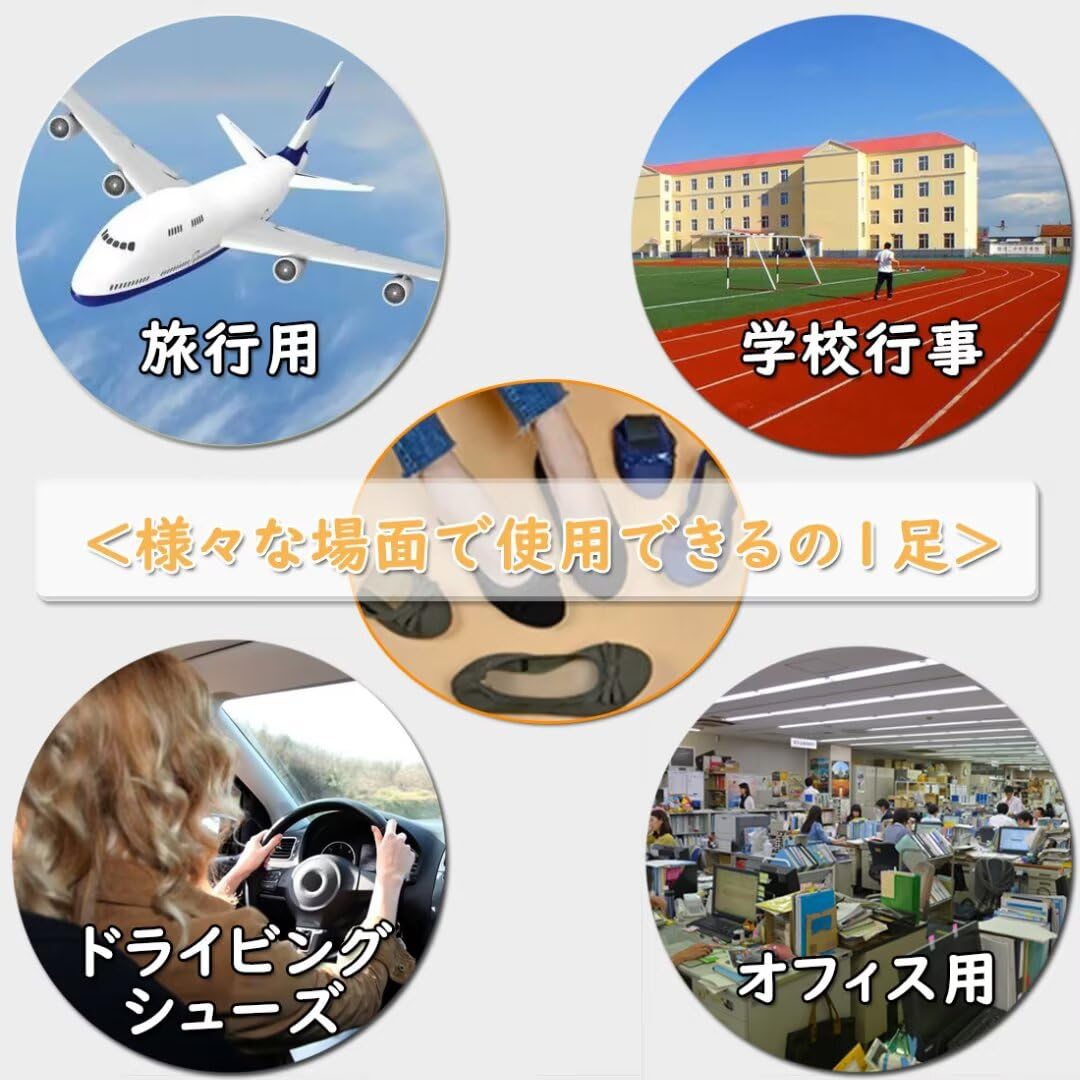 【特価商品】[Yucahype] 携帯スリッパ レディース 携帯シューズ バレエシューズ 婦人靴 折りたたみ 収納袋付き ポータブル ぺたんこ 歩きやすい フラット スリッポン パンプス ルーム 学校行事 参観日 旅行 軽量 上履き