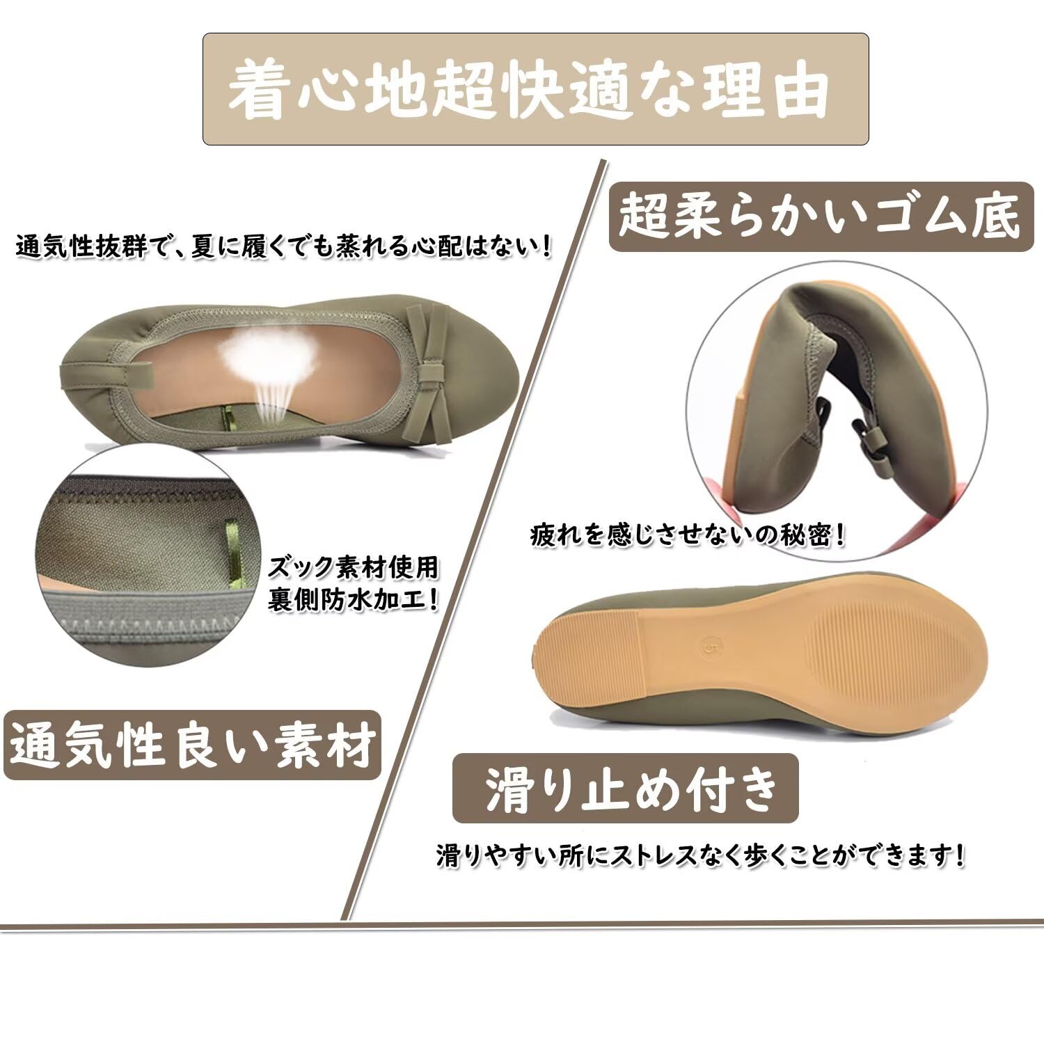 [Yucahype] 携帯スリッパ レディース 携帯シューズ バレエシューズ 婦人靴 折りたたみ 収納袋付き ポータブル ぺたんこ 歩きやすい フラット スリッポン パンプス ルーム 学校行事 参観日 旅行 軽量 上履き