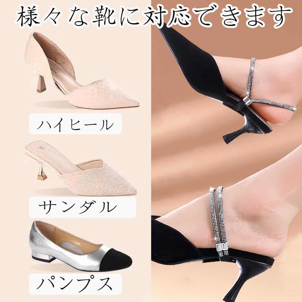 Moeagel シューズストラップ 2way使用可能 パンプス ストラップ シューズバンド シューズクリップ くつずれ防止テープ 靴ずれ防止テープ 靴 靴脱げ防止レディース ハイヒールストラップ シューズストラップ シューズアクセサリー (ブラック)
