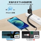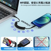 【柔軟性】この充電コードは通常時0.4mで、最大1.5mまで伸ばすことができます。スプリングデザインで、持ち運びや保管が簡単で、使いやすく、ケーブルを乱雑にせずに整頓するのに役立ちます。寝室、ソファ、オフィス、旅行中、車内など、さまざまな場所で手軽に充電が可能です。