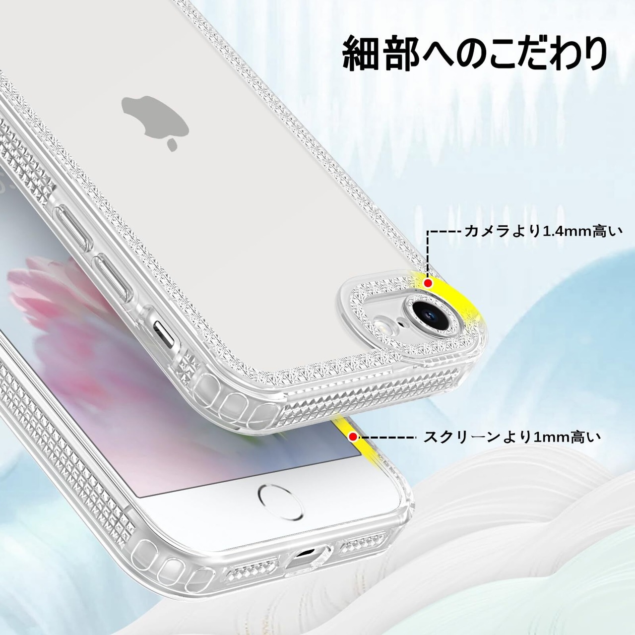 【透明美学&きらめくエッジデザイン】品質高いTPU原材料を使用し、特殊加工により高い透明度を実現します。アイフォンSE3本体の美しさをより際立たせます。また、柔軟性が高く、ケースの取り外しも簡単であり、装着の際に本体を傷つける心配もありません。滑りにくく、持ちやすいです。耐久性が高く、長くご使用いただけます. また、キラキラのフレームで、あなたをより魅力的に見せます。