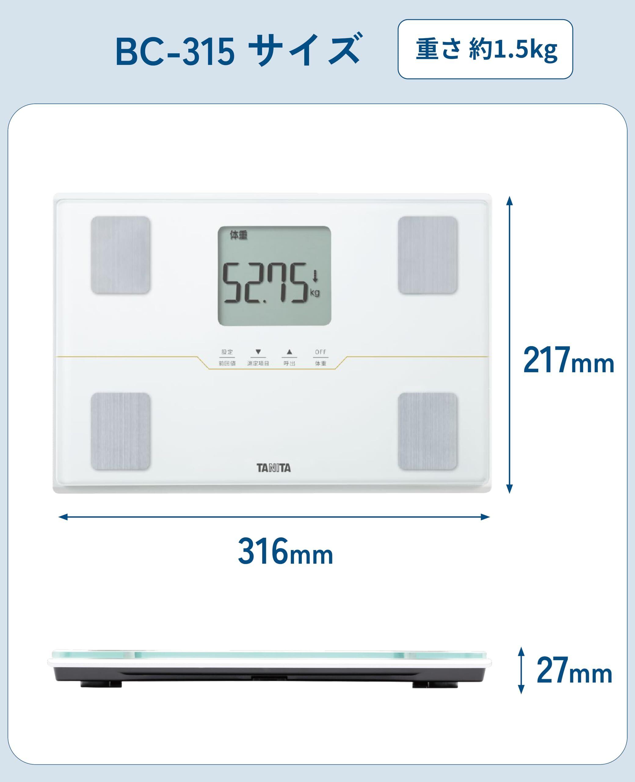 タニタ 体重計 体組成計 50g ホワイト BC-315 WH【体脂肪率/内臓脂肪レベル/筋肉量/基礎代謝量/体内年齢/推定骨量/BMI/立掛け収納OK/乗るピタ】