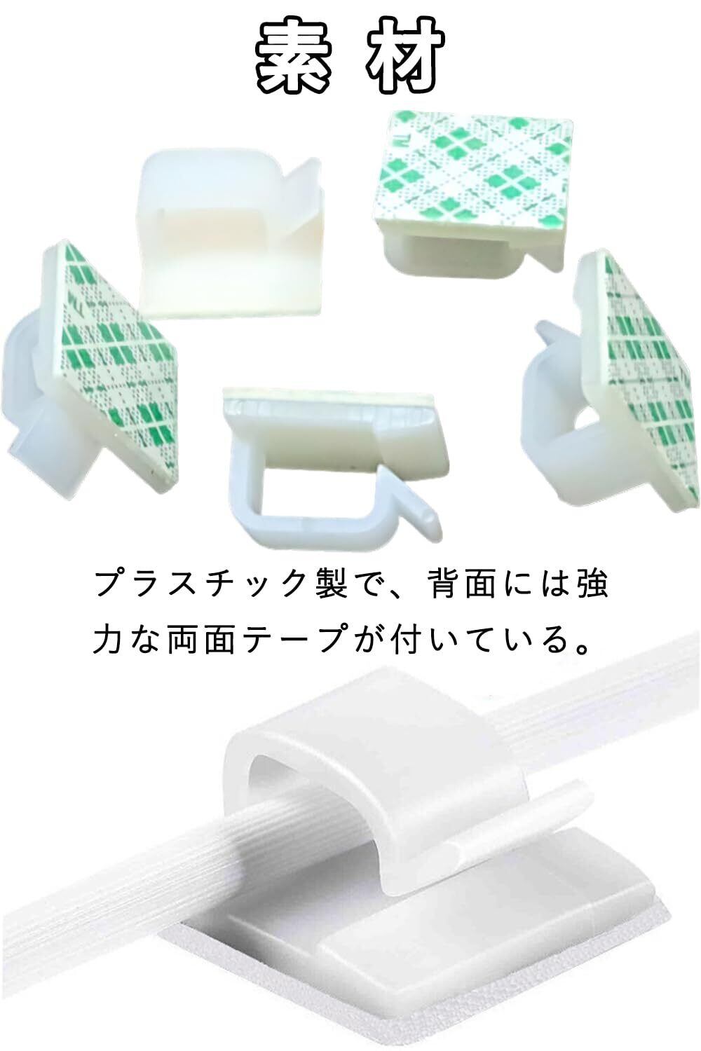 ケーブルクリップ ケーブルホルダー コードクリップ 収納 ケーブル固定具 ケーブル収納 コードホルダー 結束固定ベース 配線止め 粘着シート付 ブラック 50個入り