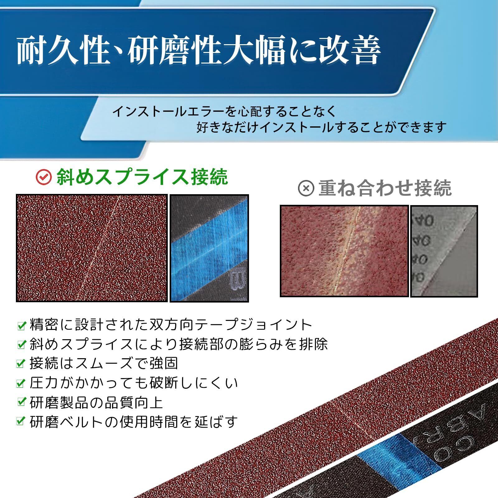 【研削効率がアップします】:特殊熱処理高品質アルミナエンドレスベルト 耐久性、研磨性大幅に改善 、特殊な目詰まり防止コーティング素材を傷めにくいです、効率的で長持ちするサンディングベルトトにより、より多くの時間とコストを節約できます。ダメージしにくいサンダー