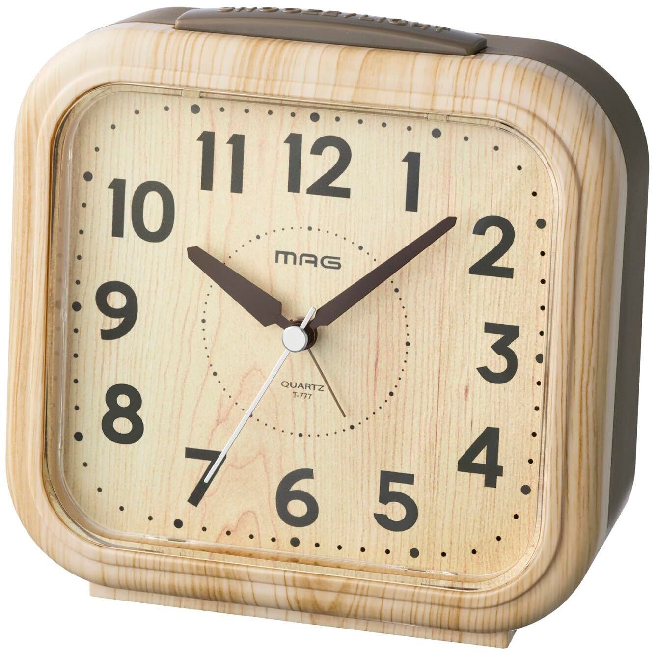 MAG(マグ) 目覚まし時計 置き時計 おしゃれ インテリア アナログ 静音 連続秒針 電子音 アラーム スヌーズ ライト ナチュラル 木目 グレイン T-777A N-Z ノア精密