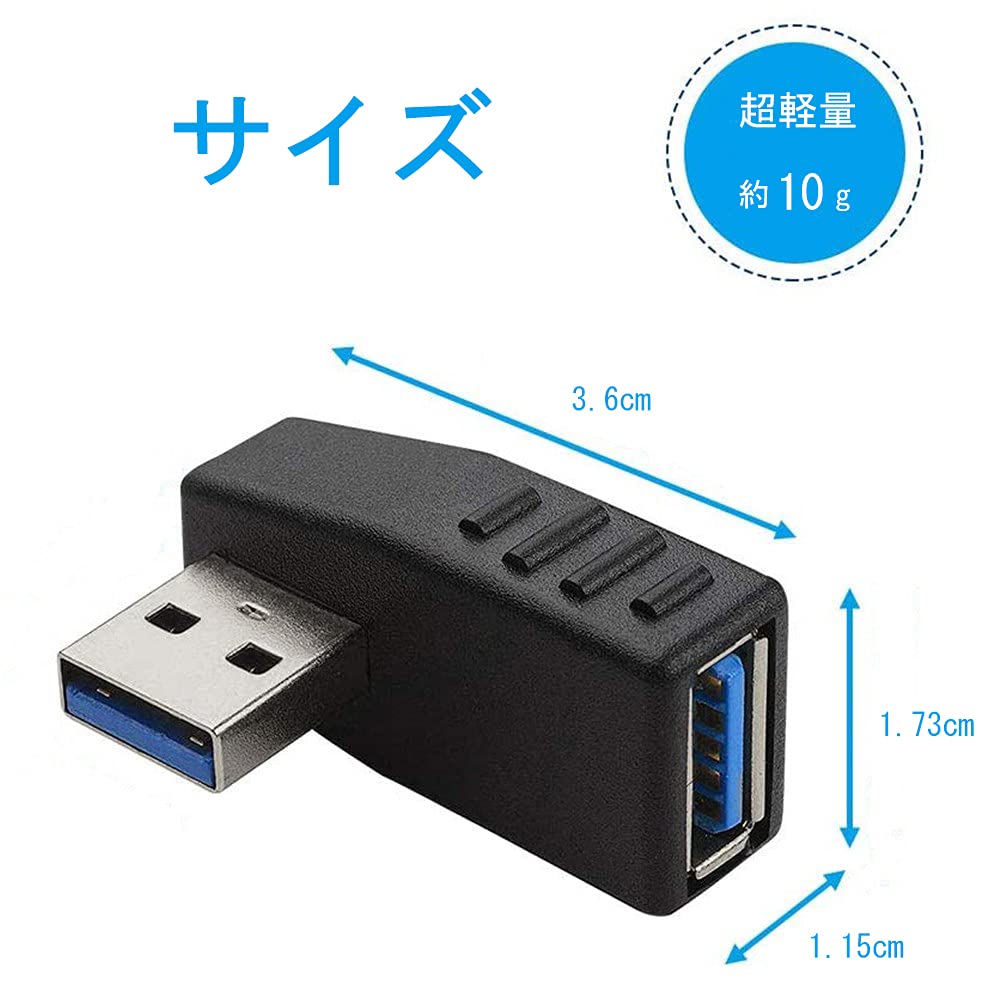 【L字型デザイン】当製品はオス to メス(AM to AF)L字型設計のUSB 3.0 変換アダプタです。