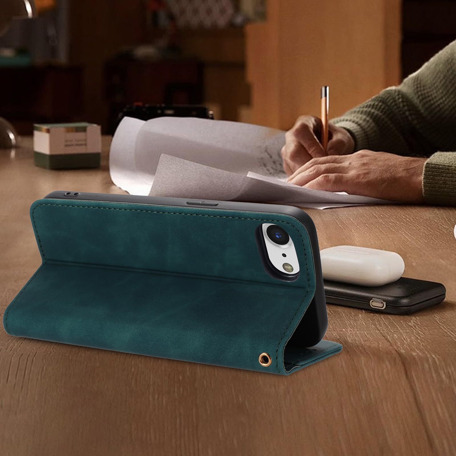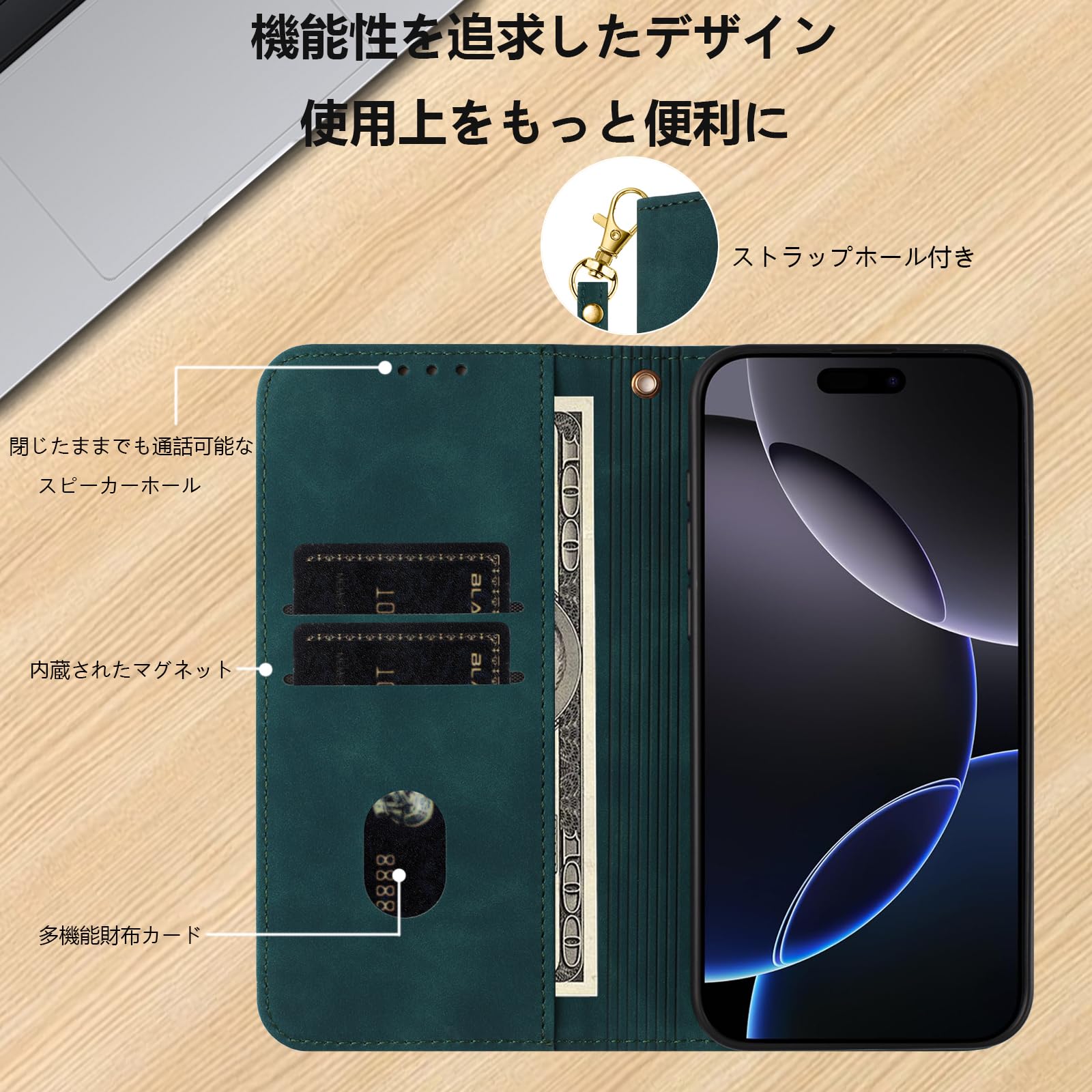 【在庫セール】iPhone SE ケース 手帳型 第2世代 第3世代 iPhone7 iPhone8 iPhone se3 / se2 通用カバー アイフォンse ケース ストラップ付き スマホカバー 肌触り良いレザー スマホケース 携帯ケース 携帯カバー マグネット内蔵 全面保護 耐衝撃 耐摩擦 スタンド機能 財布型 カード入れ (iPhone SE3/SE2/8/7対応) グリーン