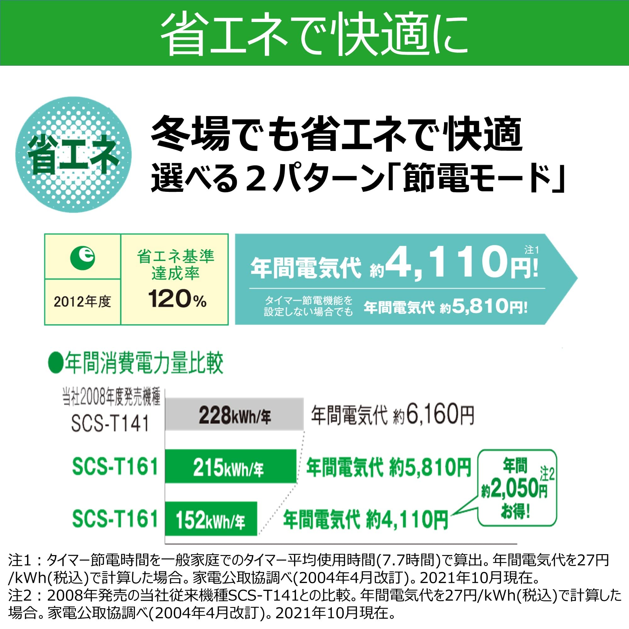 年間消費電力量:152kWh/年(215kWh/年)