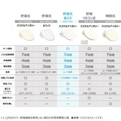付属品:本体固定プレート1枚、タンク給水ホース(約0.5m)、ホースイラスト1本、本体給水ホース(約1m)1本、分岐金具1個、脱臭フィルター1個(本体に装着済)、パッキン1セット、ボックスレンチ 1個、単3形乾電池 2本、両面テープ2本、固定ネジ3本、アンカープラグ3本