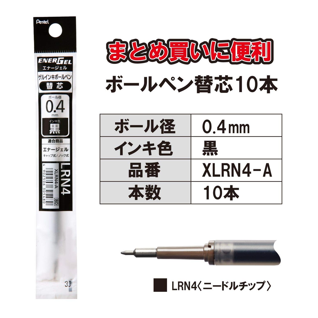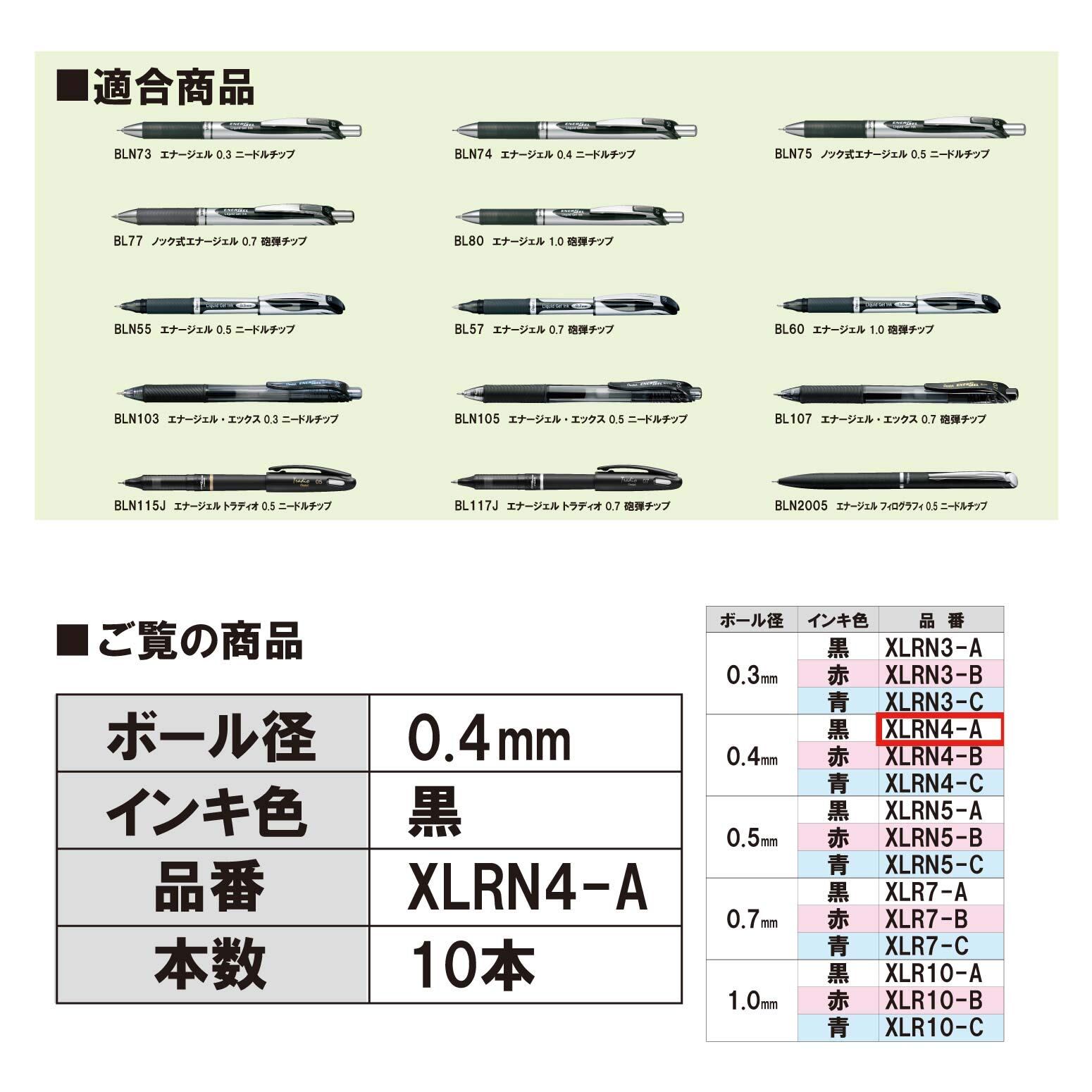 ぺんてる ボールペン替芯 エナージェル 0.4mm XLRN4-A 黒 10本