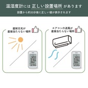 ●防水ではありませんので、湿気の多い所や水のかかるところでの使用や、水洗いはご遠慮ください。 ●温湿度計は箱から出して、約30分後に正しい目盛を表示します。