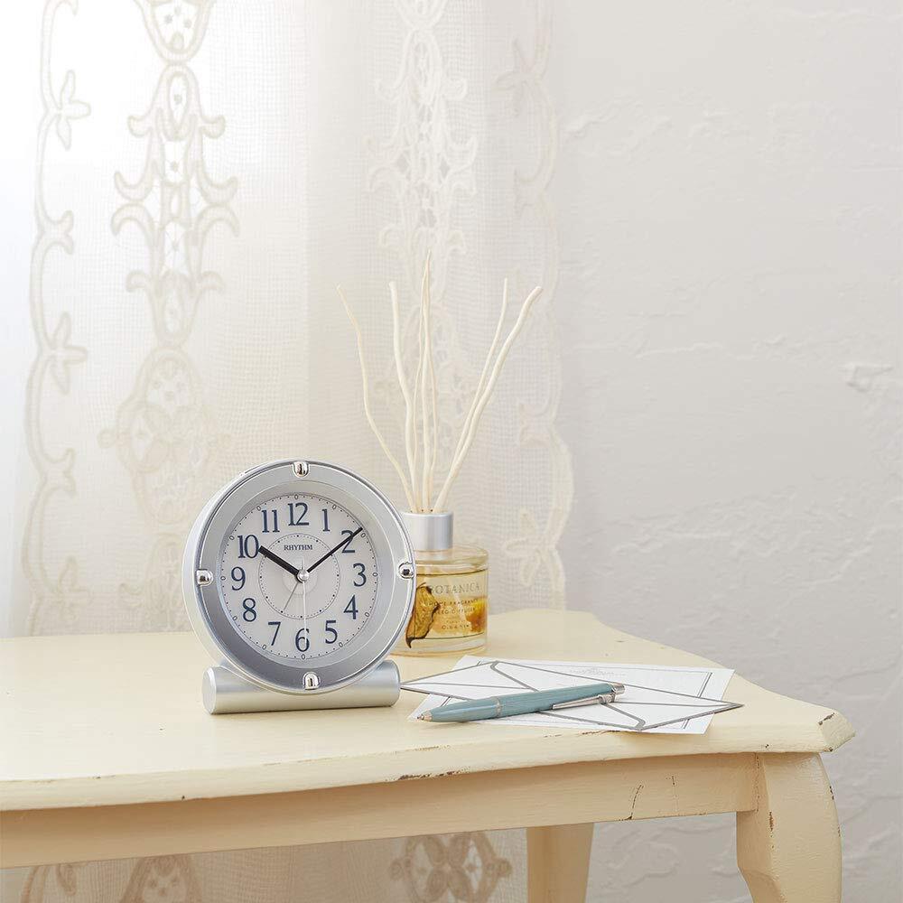 リズム(RHYTHM) 目覚まし時計 アナログ 電子音 アラーム 連続秒針 ライト付き シルバー 8RE679SR19 12.4x12x7.5cm