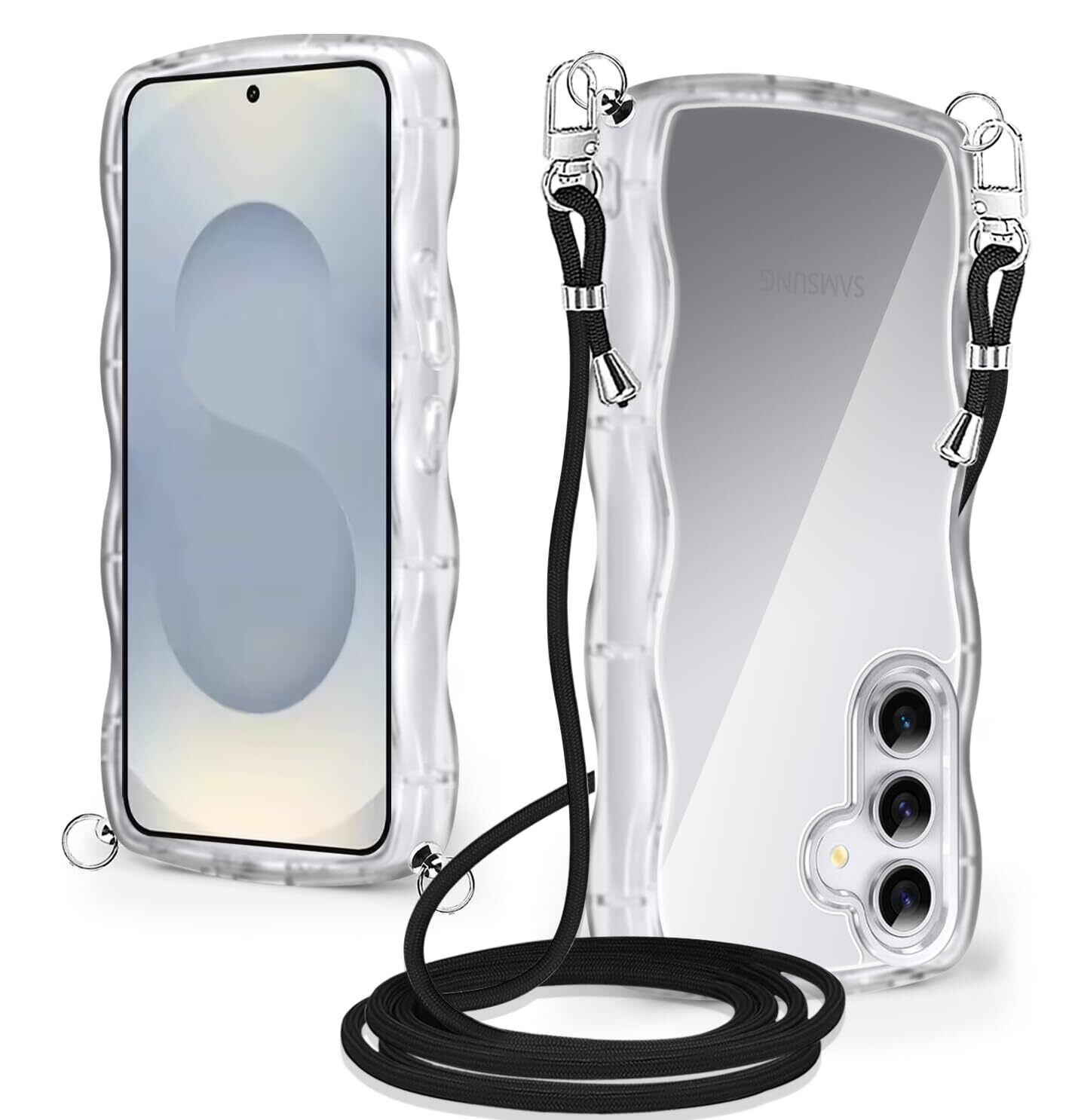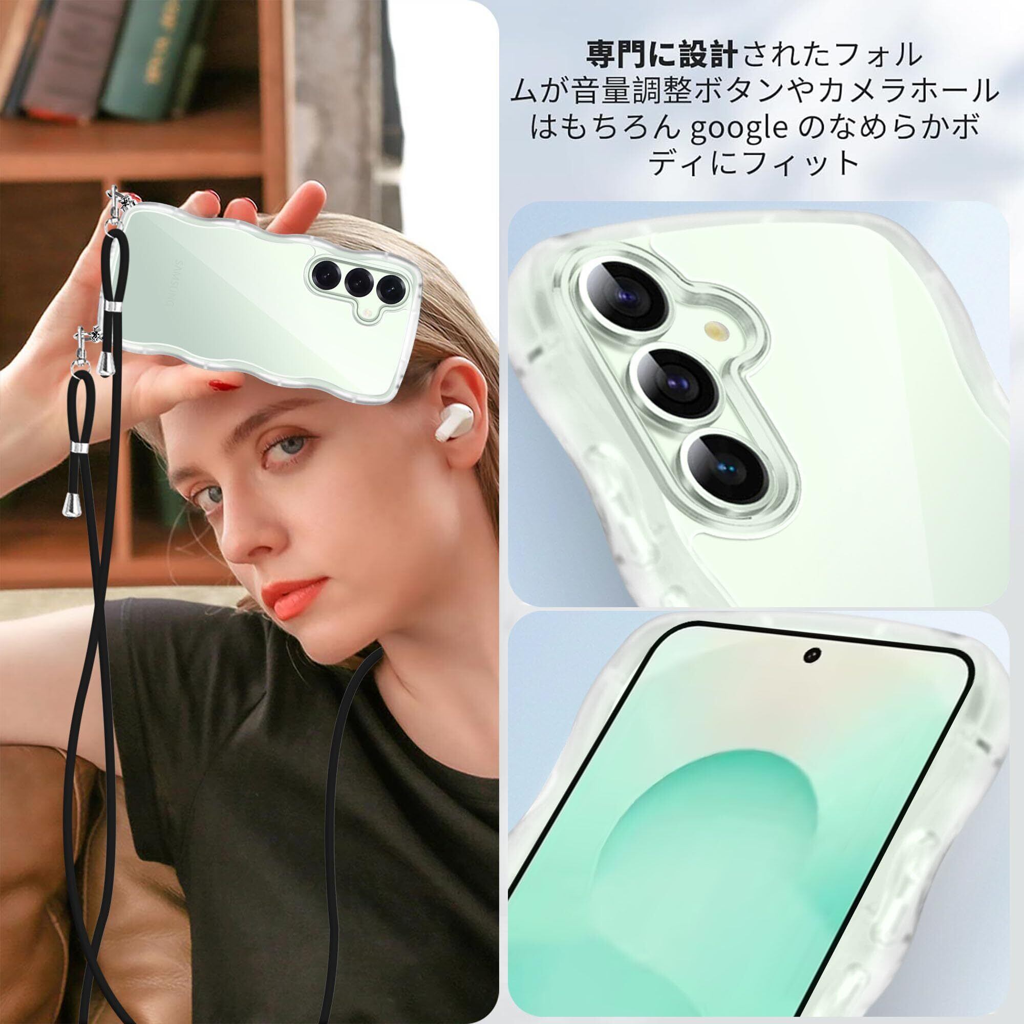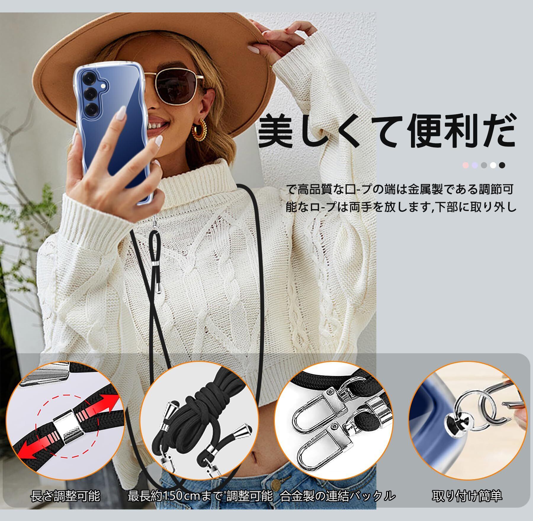 Galaxy S25 ケース クリア ショルダー SC-51F スマホケース ス ストラップ付き ギャラクシーS25 カバー 耐衝撃 透明 かわいい 人気 薄型 軽量 首かけ 肩掛け 縄掛けケー 取り外し可能 長さ調整可能 ワイヤレス充電対応(クリア)