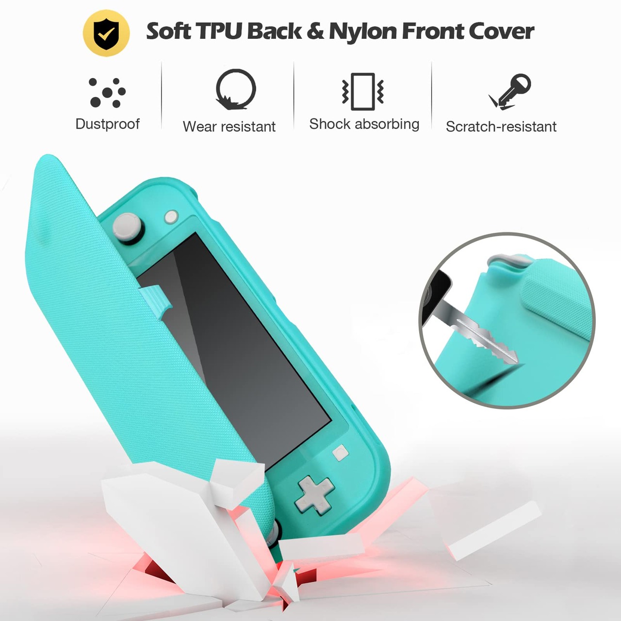 【高保護性】柔らかいTPUバックカバーと高品質のナイロン素材のフロントカバーにより、装着したり外したりするのが容易、Switch Liteをほこり、衝撃、落下からも保護します; マイクロファイバーのインテリアがスイッチ画面を傷から守ります。
