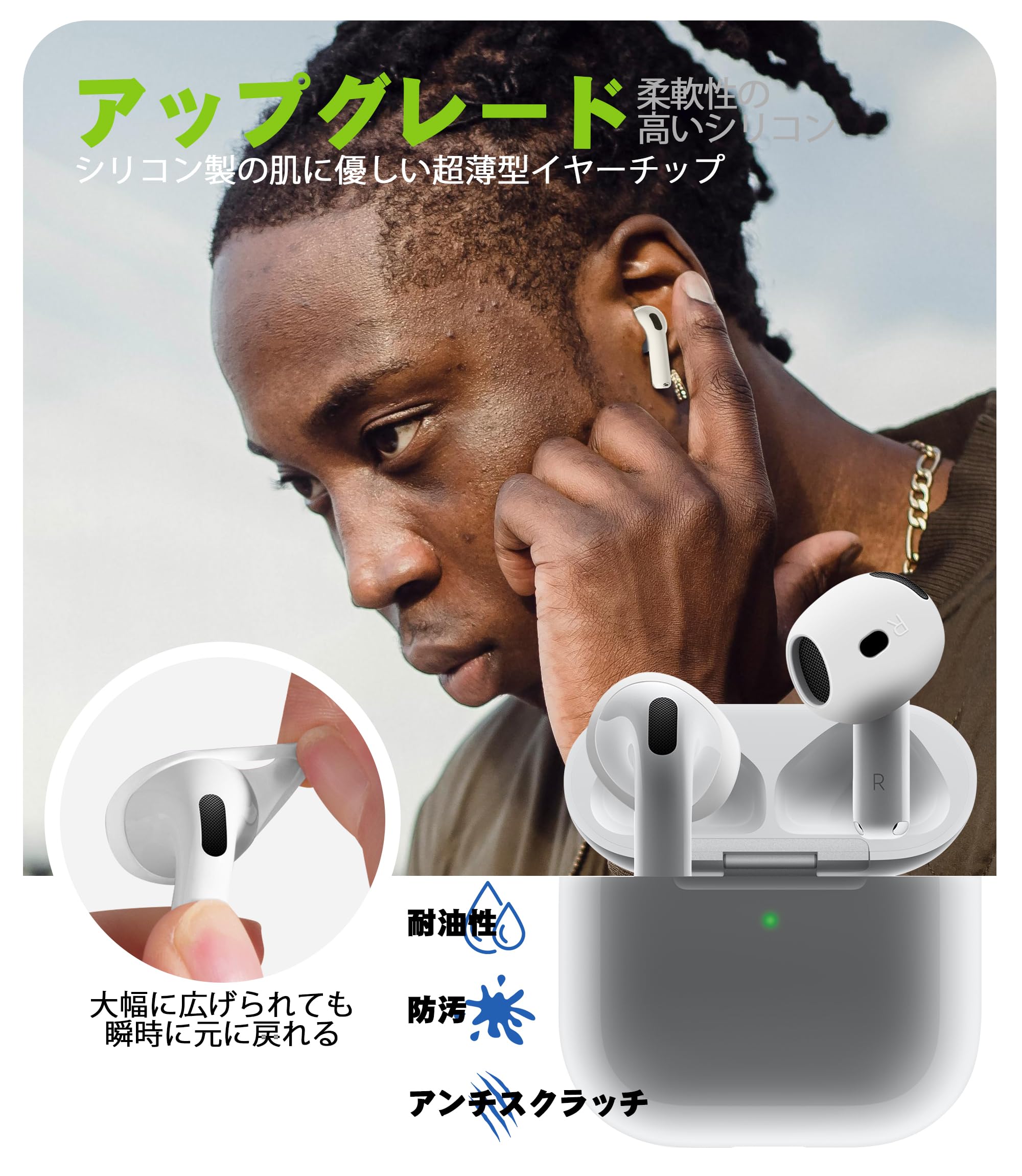 【パッケージ内容】Airpods 4に対応する3組。イヤーチップは収納ボックスを装備されます。未使用の イヤーチップを紛失や汚れからしっかり守ることができます。