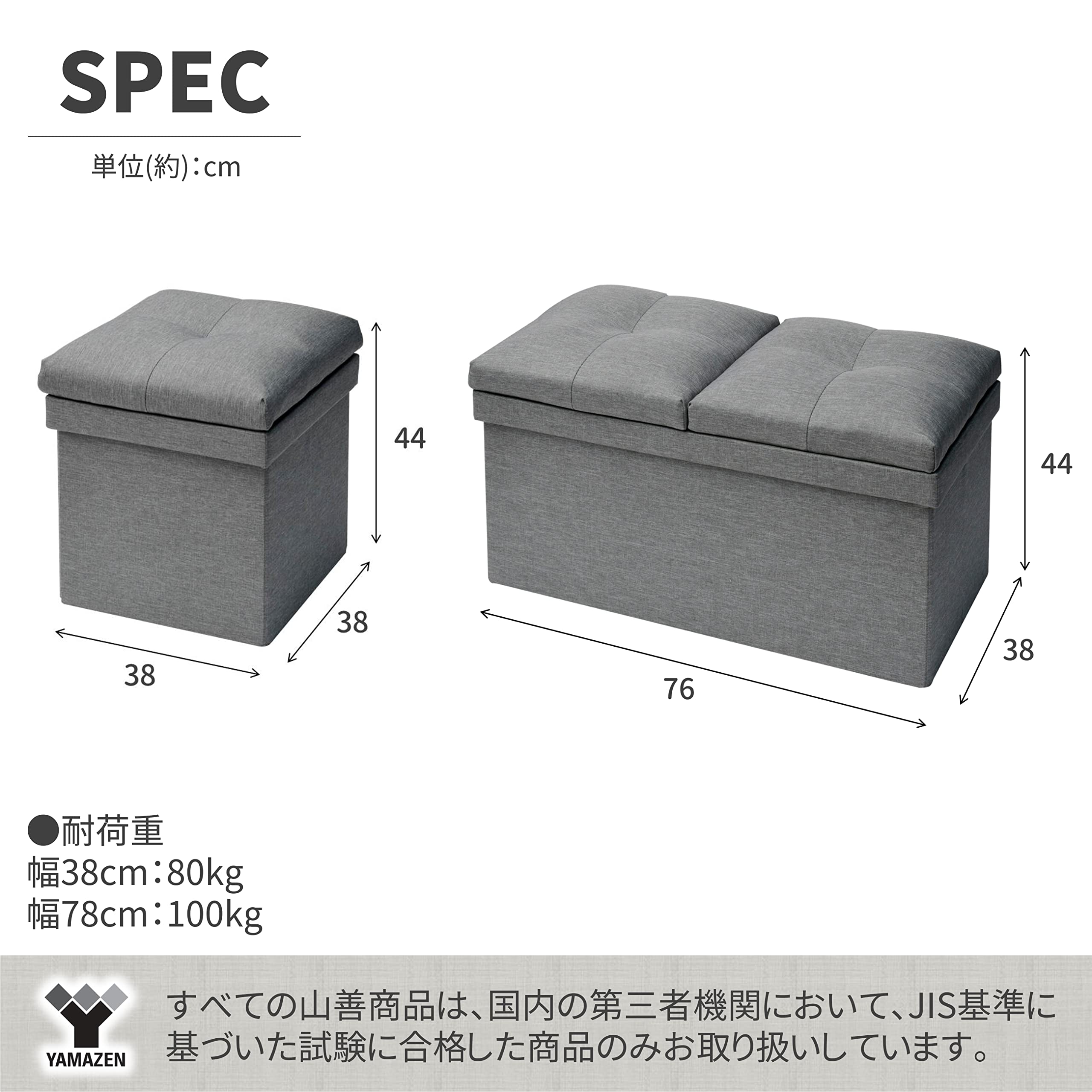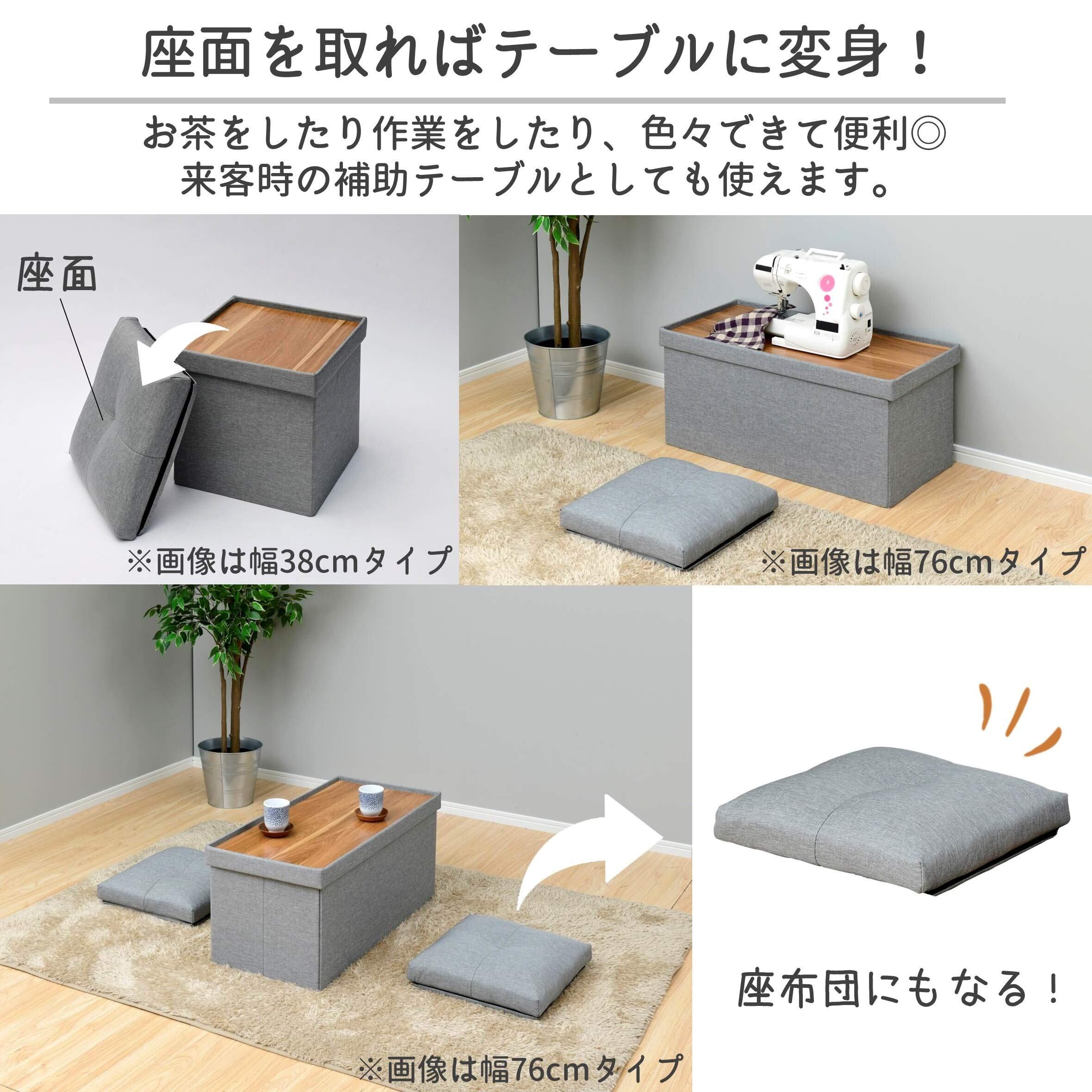 山善(YAMAZEN) 収納スツール テーブル付き 座面が座布団にもなる 折りたためる オットマン 収納ボックス 椅子幅76×奥行38×高さ44cm かんたん組立 ライトグレー JLS-76Z(LGY)