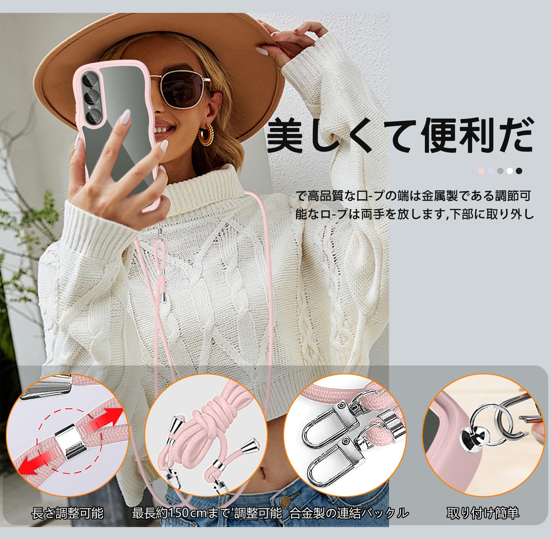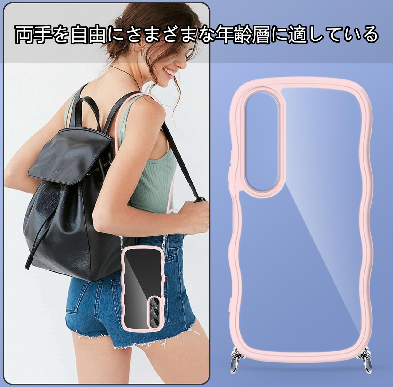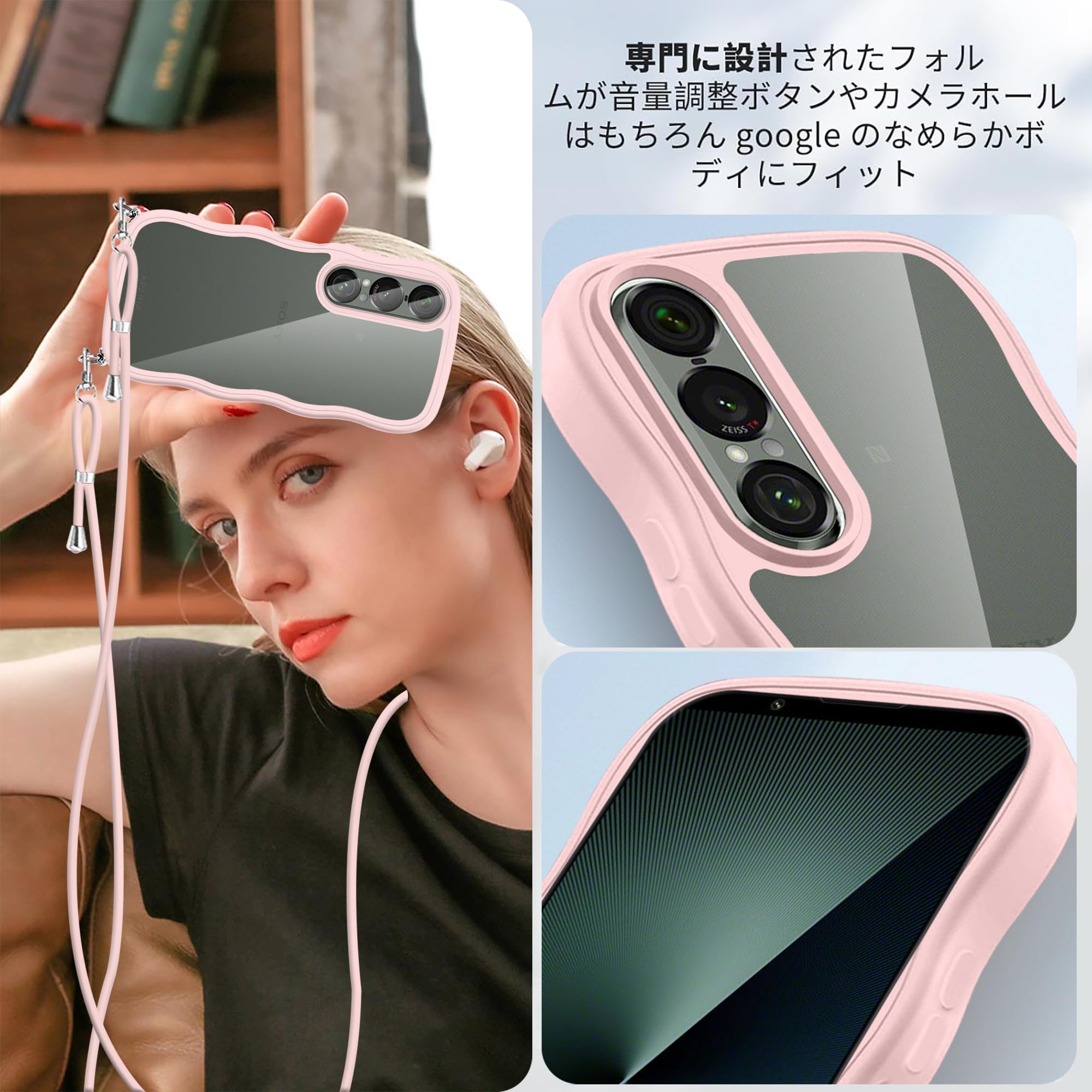 【在庫セール】Xperia 1 VII ケース SO-51F カバー クリア ショルダー 耐衝撃 かわいい 人気 透明 エクスペリア 1 VII スマホケース 薄型 軽量 首かけ 肩掛け 縄掛けケース ストラップ付き 取り外し可能 長さ調整可能 ワイヤレス充電対応(ピンク)