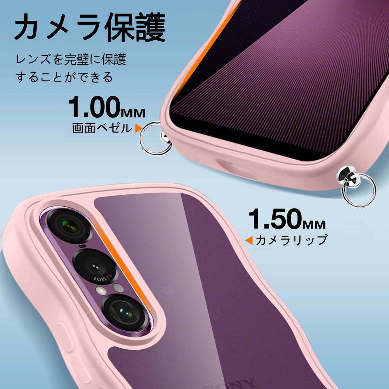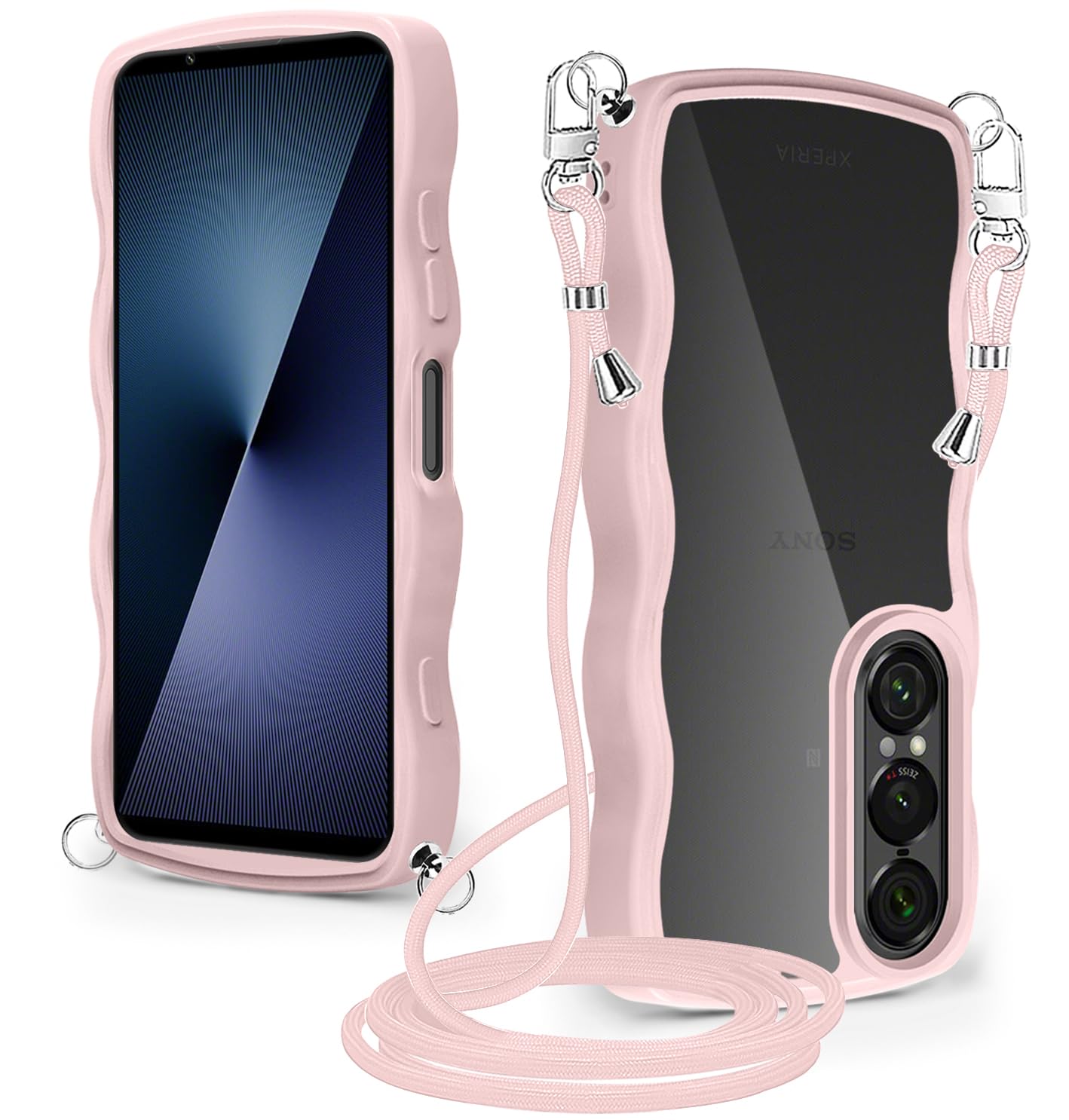 Xperia 1 VII ケース SO-51F カバー クリア ショルダー 耐衝撃 かわいい 人気 透明 エクスペリア 1 VII スマホケース 薄型 軽量 首かけ 肩掛け 縄掛けケース ストラップ付き 取り外し可能 長さ調整可能 ワイヤレス充電対応(ピンク)