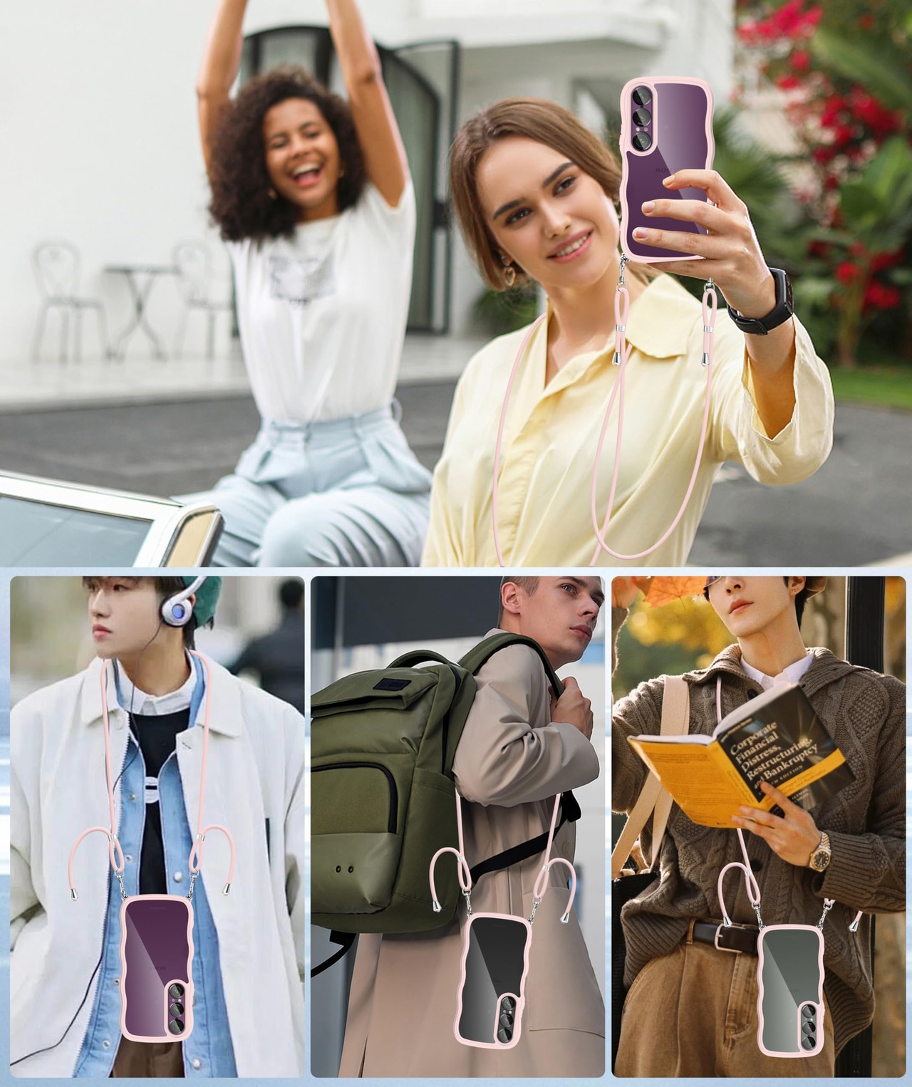 【実用・縄掛けケース】ショルダーストラップ付き、取り付けや長さ調整が非常に簡単。特にポケットのない服が多いので、外出時に肩にかけるととても便利です。ショルダーストラップは取り外し可能なので、それを使わなくても簡易的なスマホケースとして使用することができます。外出、登山、買い物、自撮り、電車内の時など日常生活からできるスマホ紛失・落下防止できるスマホネックストラップリングで両手を自由にし楽な日常ができます。