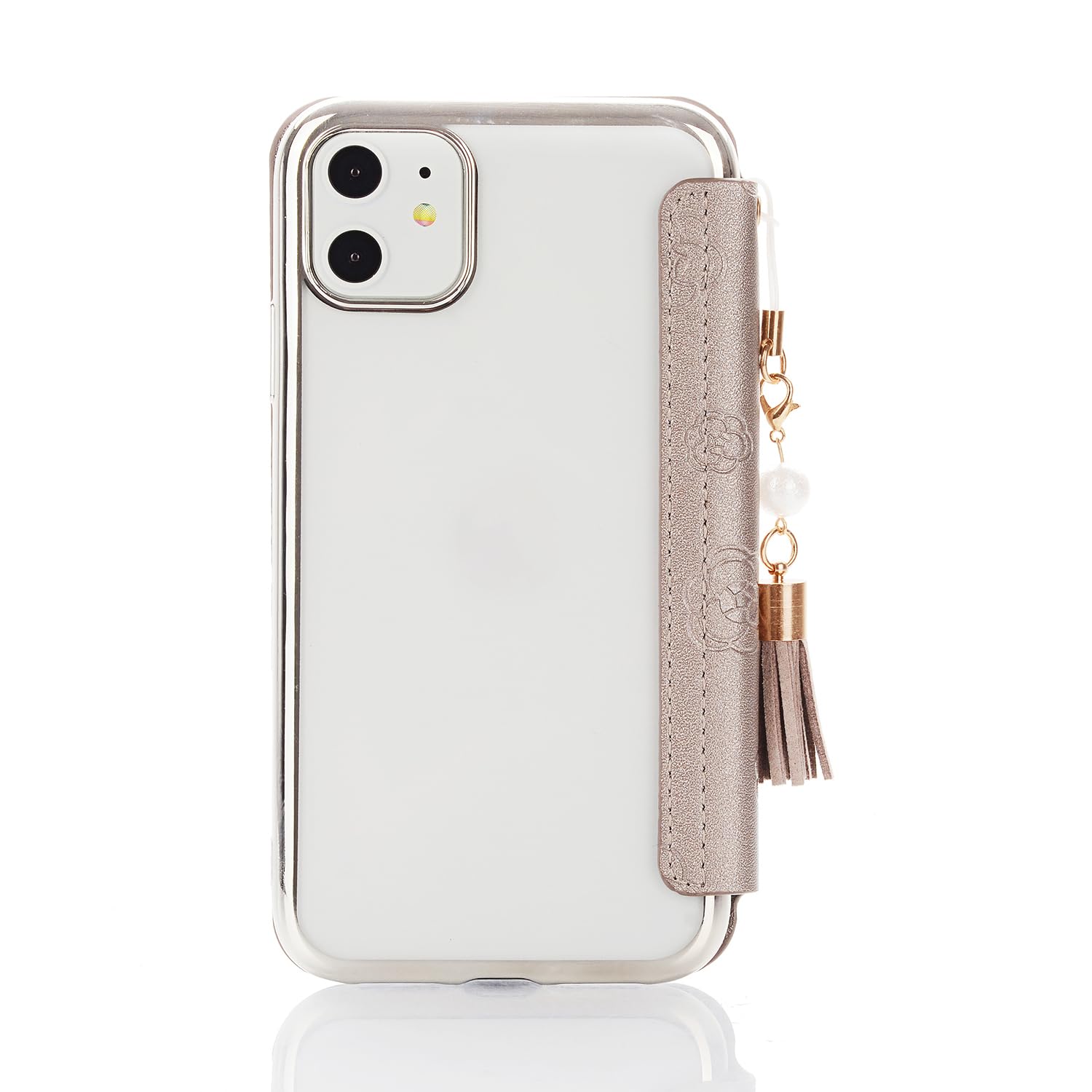 【タッセル付き式、透明バック式,エンボス工芸】タッセル付き、非常に優しくて、ハンドバッグ中でも探しやすいです。便利なデザイン、片手で簡単に開く、マグネット付きないので、カード面を直接に接しないので、磁気カード類が壊れる心配はあり。透明なバックので、iPhoneのバック本体を見て、スペシャルな高級感なデザインです。エンボス工芸で、皮革に凹凸模様の花柄をつけること、質感も手触りも色合いも満足させていただきます。