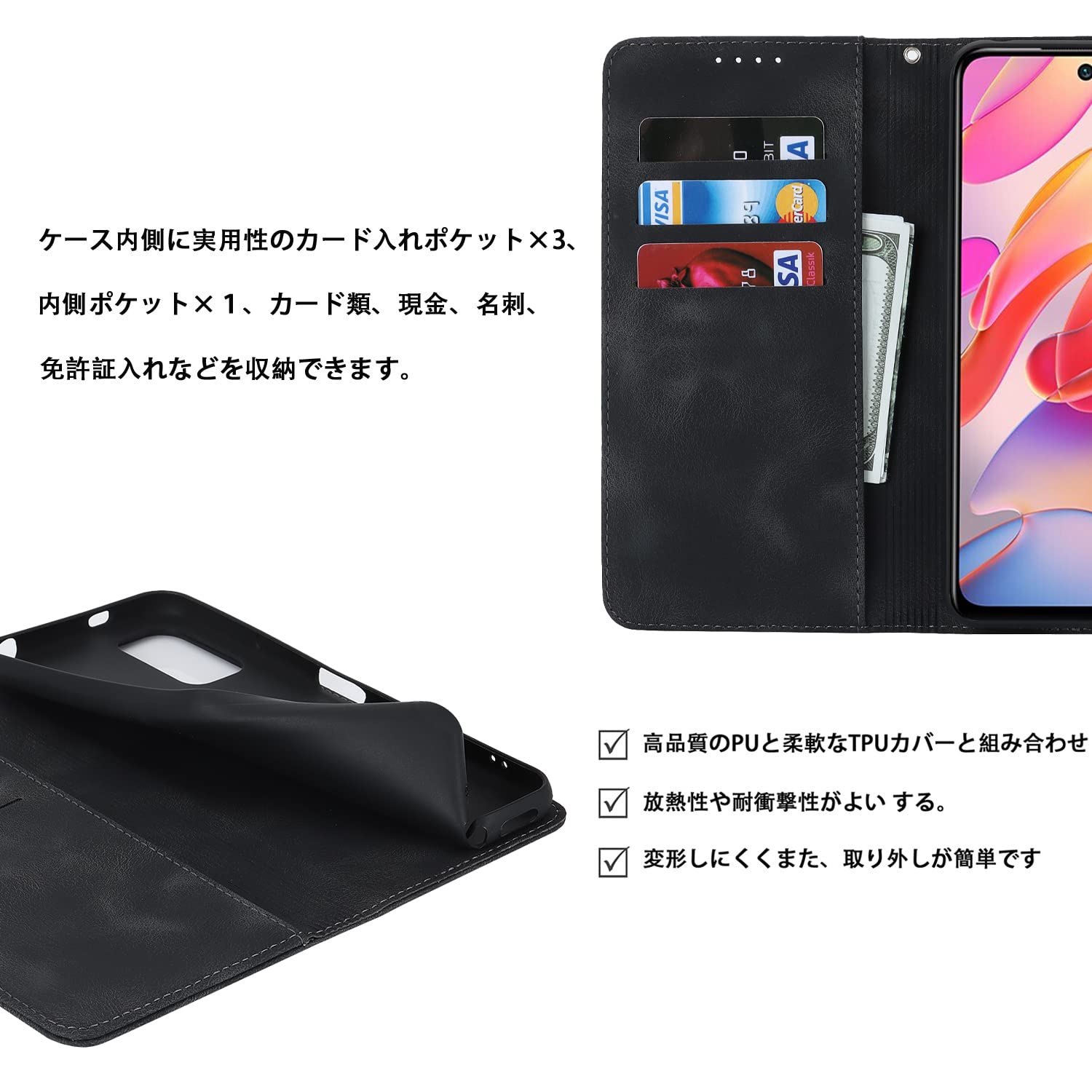【収納機能】Redmi Note 10 JE/Note 10Tケース内側に実用性のカード入れポケット×3、内側ポケット×1、カード類、現金、名刺、免許証入れなどを収納でき、通勤も通学にも楽々タイプです。内蔵マグネットの機能を最大限に発揮させ、カードの消磁を防ぐために、カードスロットに2枚のカードをセットすることを推奨します。