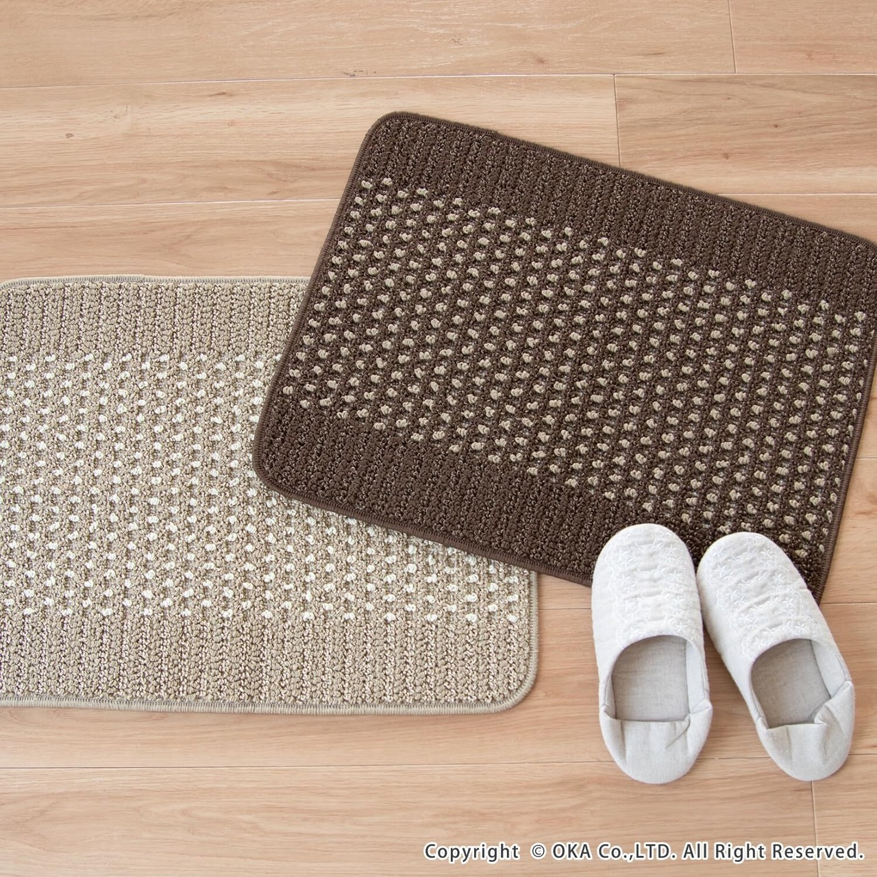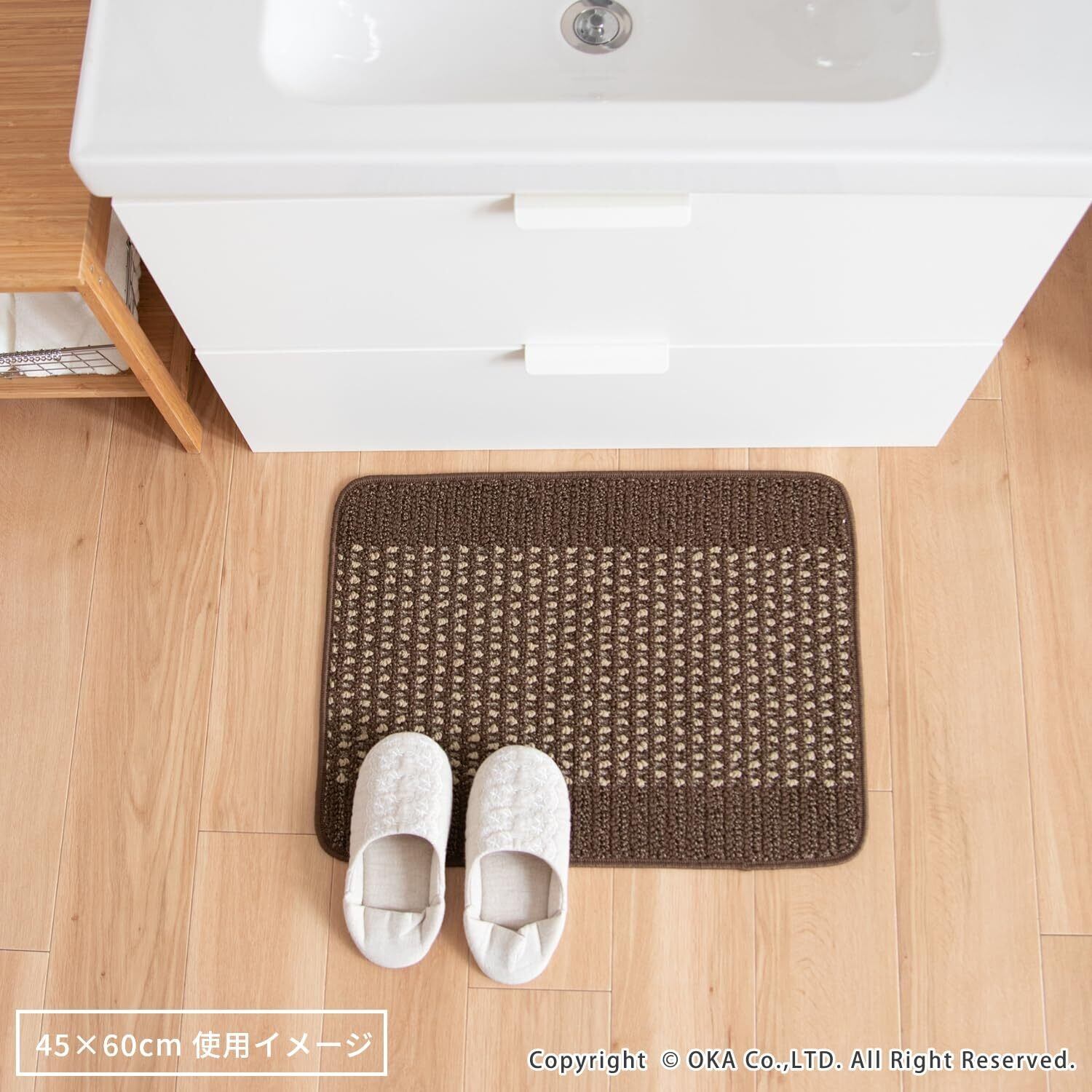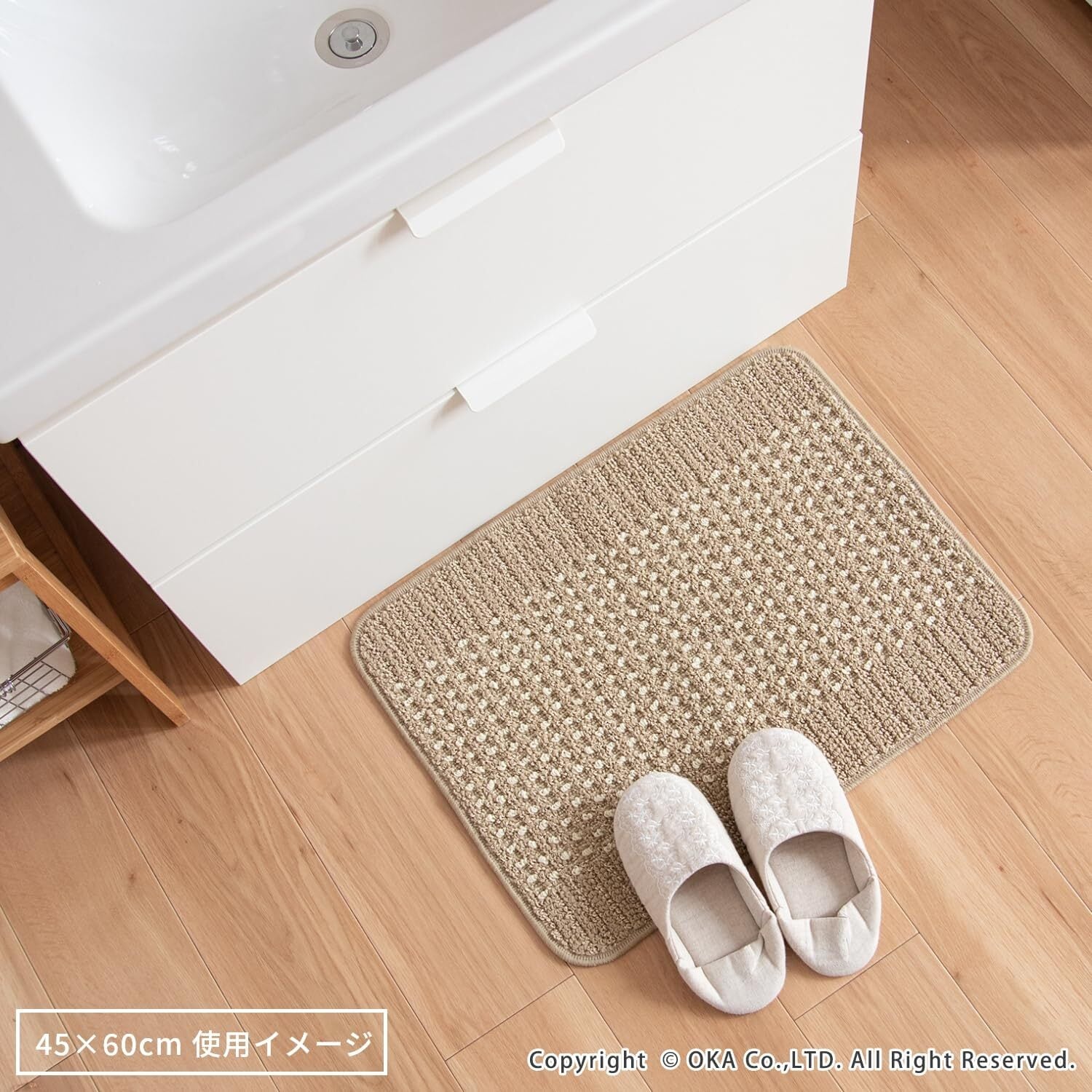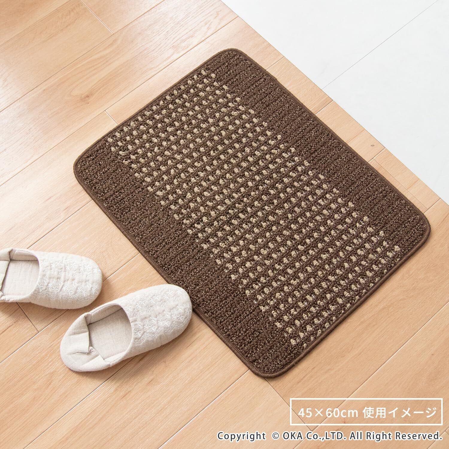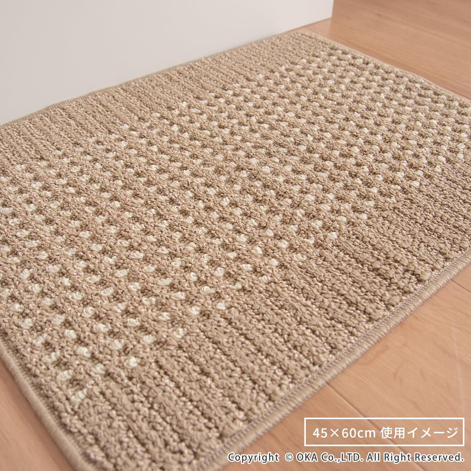 オカ(OKA) 優踏生洗いやすい キッチンマット 約45cm×60cm ベージュ (洗える 軽量 滑り止め クッション)