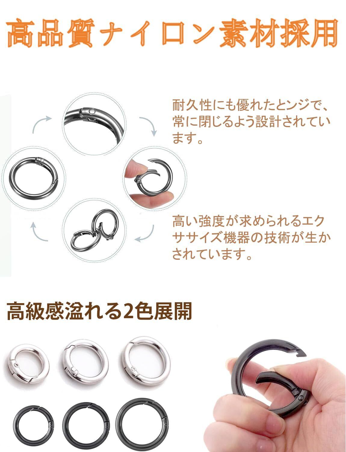 【耐荷重】:カラビナ リングは高品質の亜鉛合金製で、軽くても耐荷重10Kgを実現しました。大切な道具の脱落や落下を防ぐことができるので、安心して使ってください。