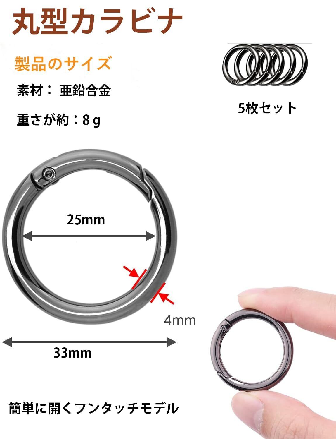 【商品サイズ】:5個セット、 外径:約40mm、内径:約32mm、 幅(線経):約4mm、重量約9gという小ささと。