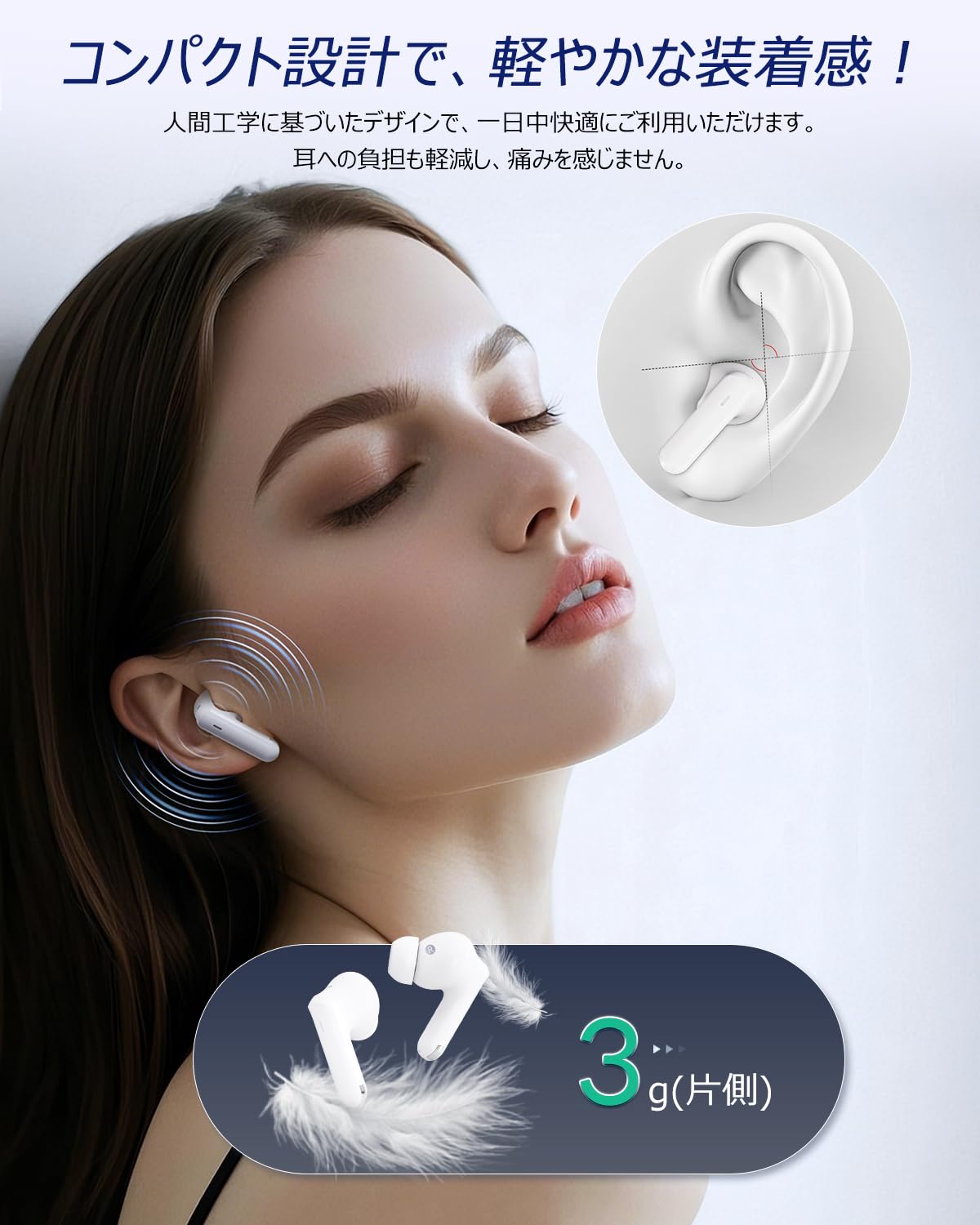 【軽量設計 & 人間工学に基づいた快適フィット】 片耳わずか3gの超軽量設計で、長時間使用しても耳への負担が軽減!人間工学に基づいた形状で、運動中でもズレ落ちにくく、快適な装着感を実現しています。 付属のイヤーピースは3サイズ(S/M/L)を同梱しており、自分の耳にぴったりのフィット感を見つけられます。通勤・ジム・旅行など、あらゆるシーンで活躍します!✈️️