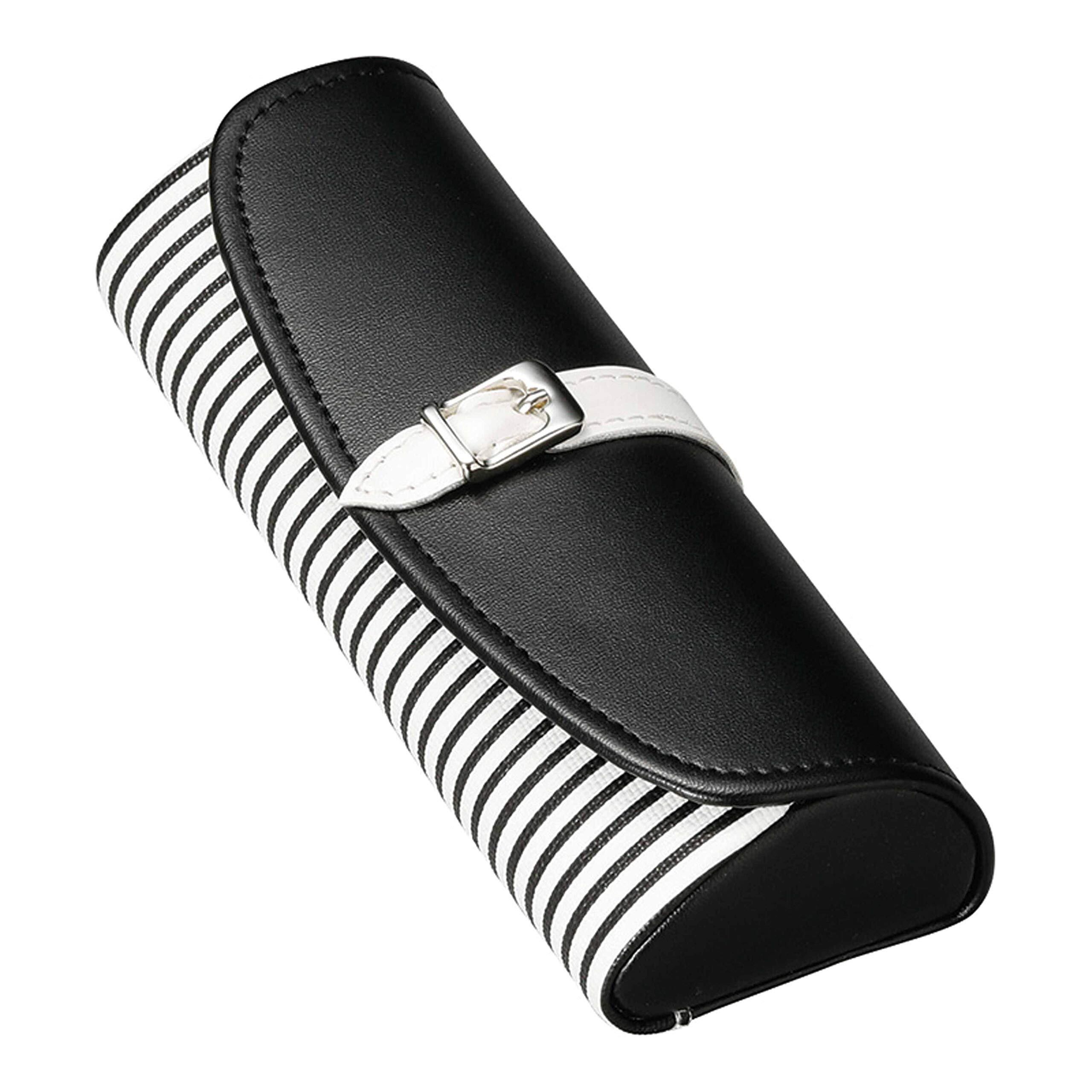 メイガン(Meigan) ベルトが おしゃれ 革 フェイクレザー メガネケース ブラック コンパクト セミ ハード 12167