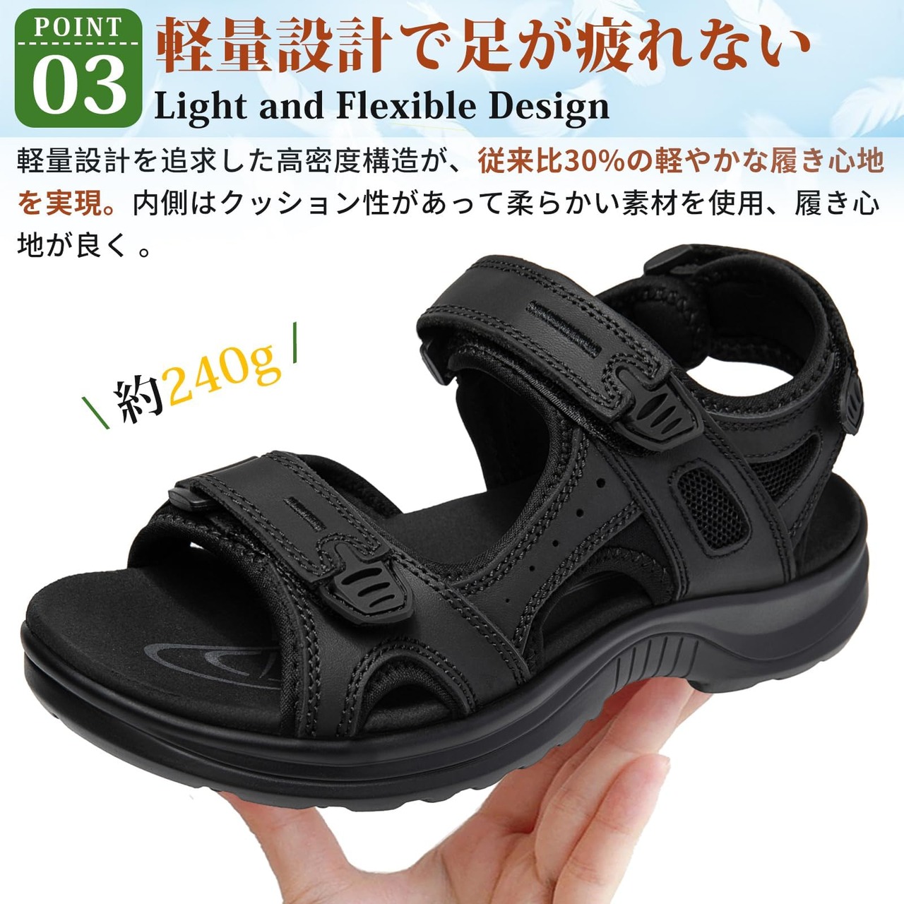 [SOARHOPE] サンダル さんだる メンズ レディース スポーツさんだる 本革 ウォーキングサンダル 夏 通気 軽量 歩きやすい