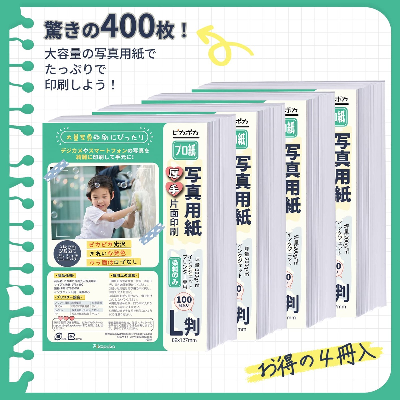 用紙サイズ✕枚数: L✕400枚